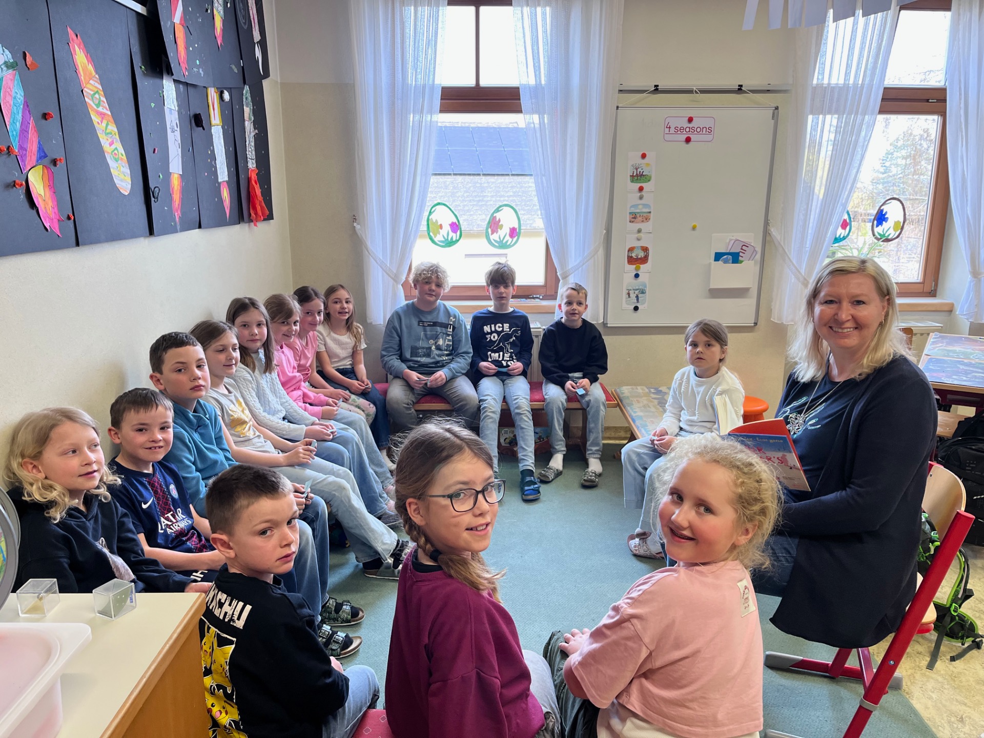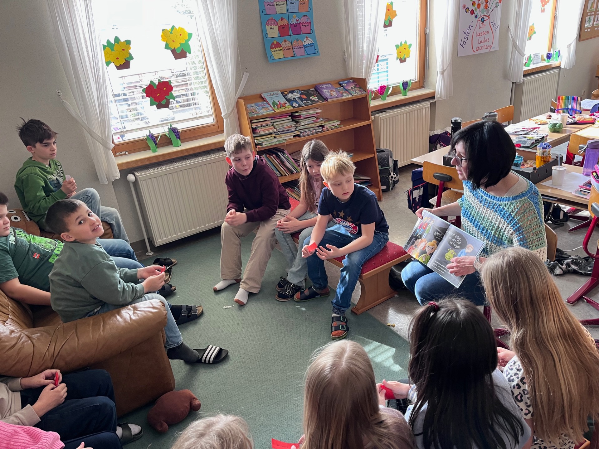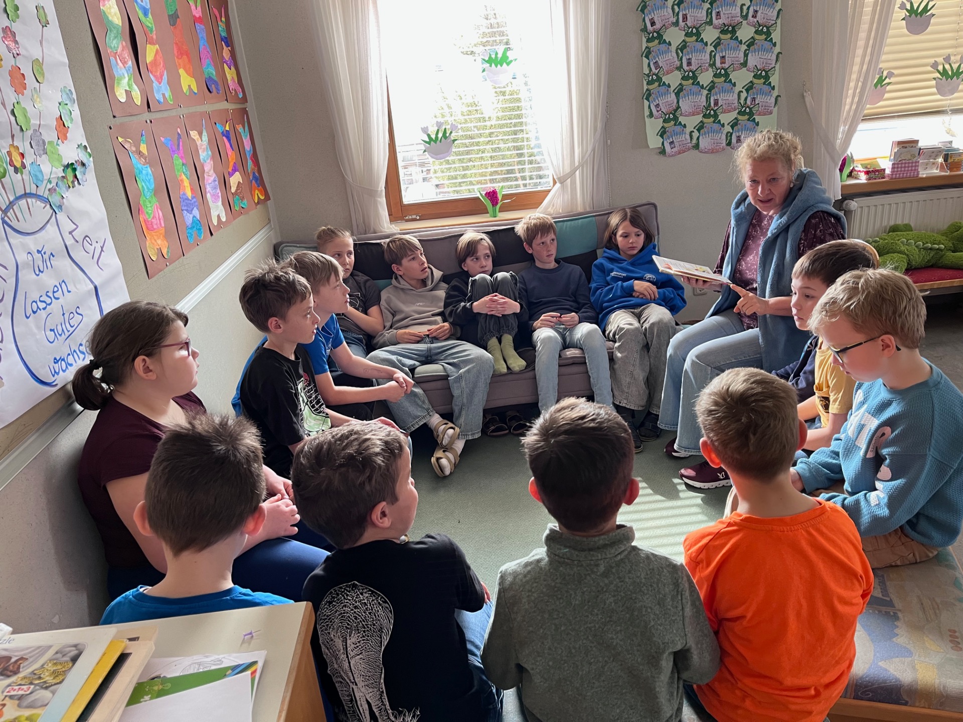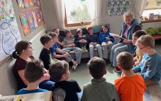 Gemeinsam konnten die Kinder aus verschiedenen Klassen die Leseatmosphäre genießen und zur Vertiefung der Workshop-Inhalte Ausgrenzung, Mut und Zusammenhalt in verschiedensten Geschichten erleben.