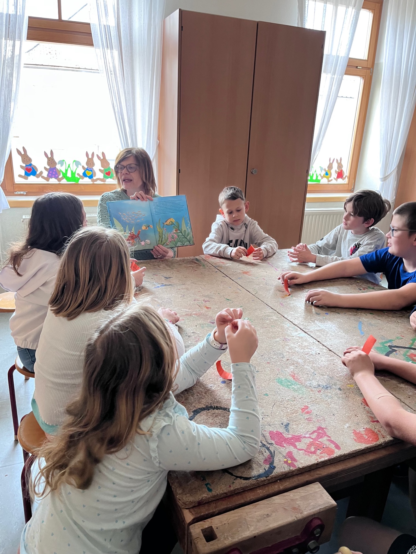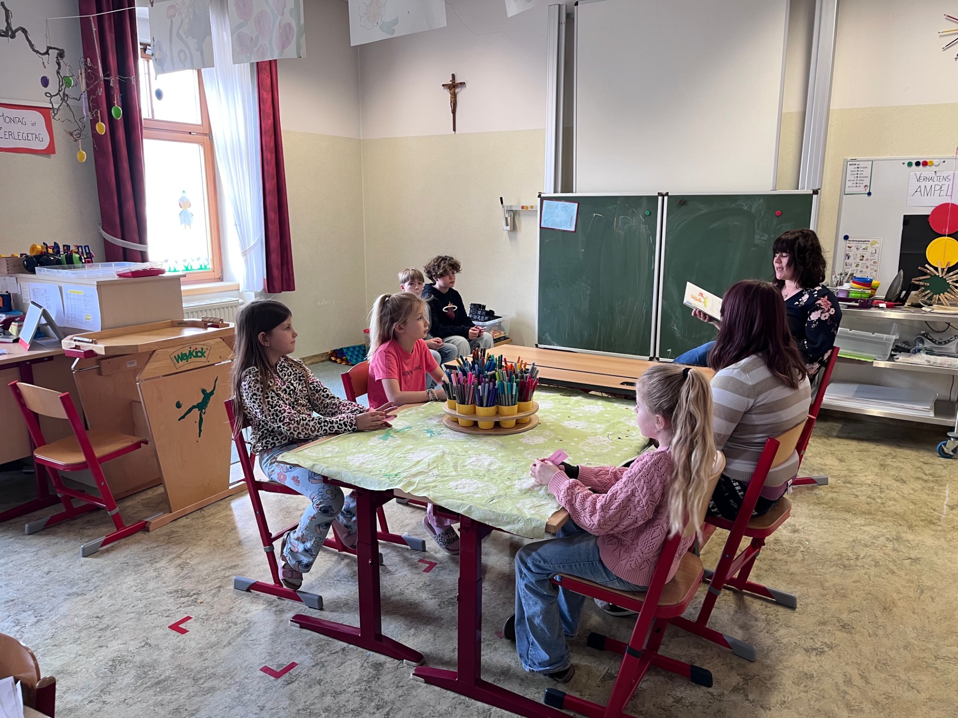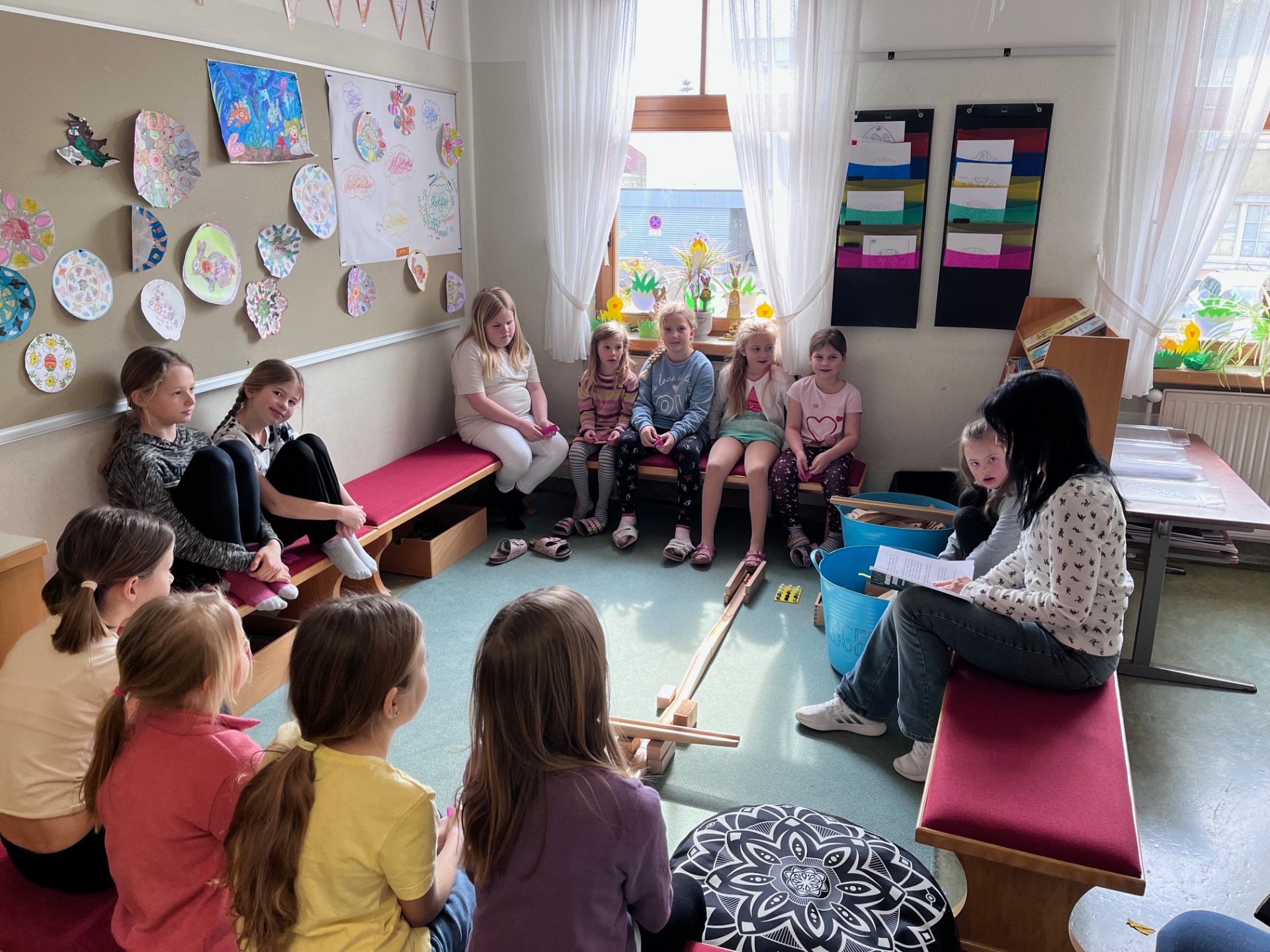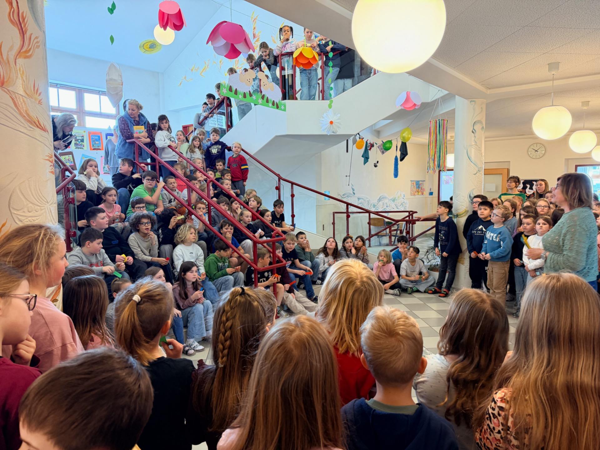 Gemeinsam konnten die Kinder aus verschiedenen Klassen die Leseatmosphäre genießen und zur Vertiefung der Workshop-Inhalte Ausgrenzung, Mut und Zusammenhalt in verschiedensten Geschichten erleben.
