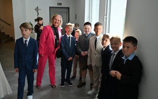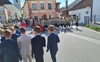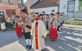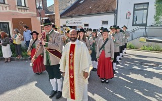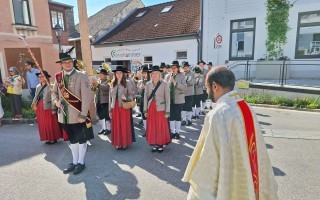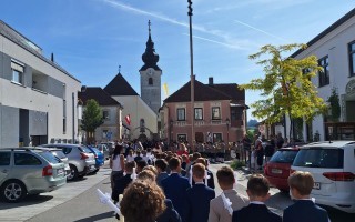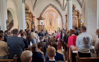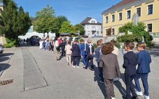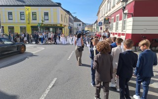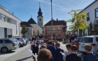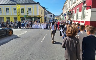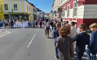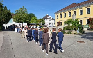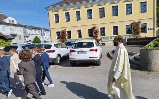 Herr Pfarrer Wilson Abraham, Trachtenmusikkapelle, Bürgermeister Johann Weingartner, Gemeinderat, Pfarrgemeinde- und Pfarrkirchenrat, die Eltern und Geschwister der Erstkommunionkinder, Volksschuldirektorin OSR Anita Brottrager, BEd, Religionslehrerin Michaela Brandstetter, BEd, und die Klassenlehrerinnen VOL Elisabeth Gschöpf und VOL Gabriele Bogenreiter begleiteten die 42 Kinder in die Kirche.