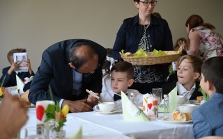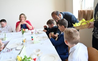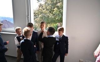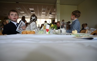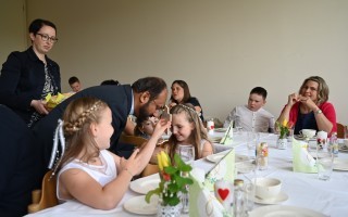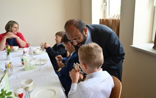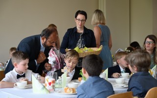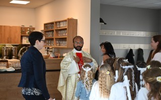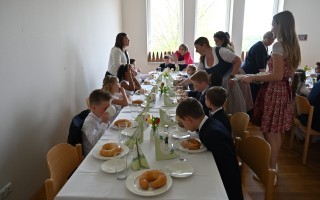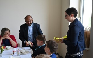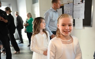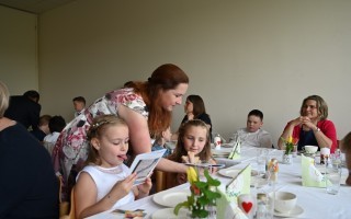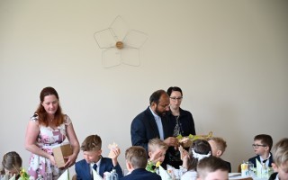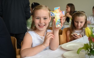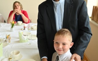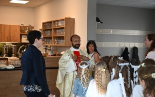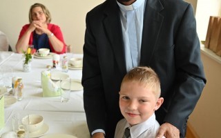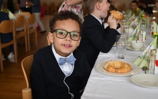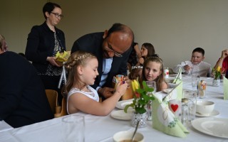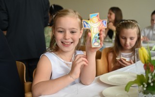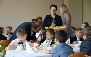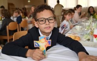 Beim anschließenden Frühstück im Korbiniansaal konnte Herr Pfarrer Wilson den Kindern kleine Kreuze zur Erinnerung als Geschenk überreichen.