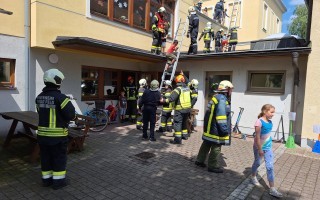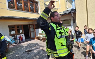 Es ist ja klar, dass nicht nur die Kinder und Lehrerinnen üben müssen ruhig, zügig und flott das Schulhaus zu verlassen, auch die Einsatzkräfte der Freiwilligen Feuerwehr müssen die Vorgänge üben. Weiters müssen sie die örtlichen Gegebenheiten kennenlernen.