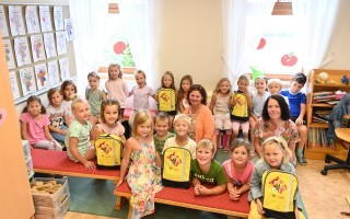 Sie durften ihnen je einen Sumsi – Rucksack überreichen.