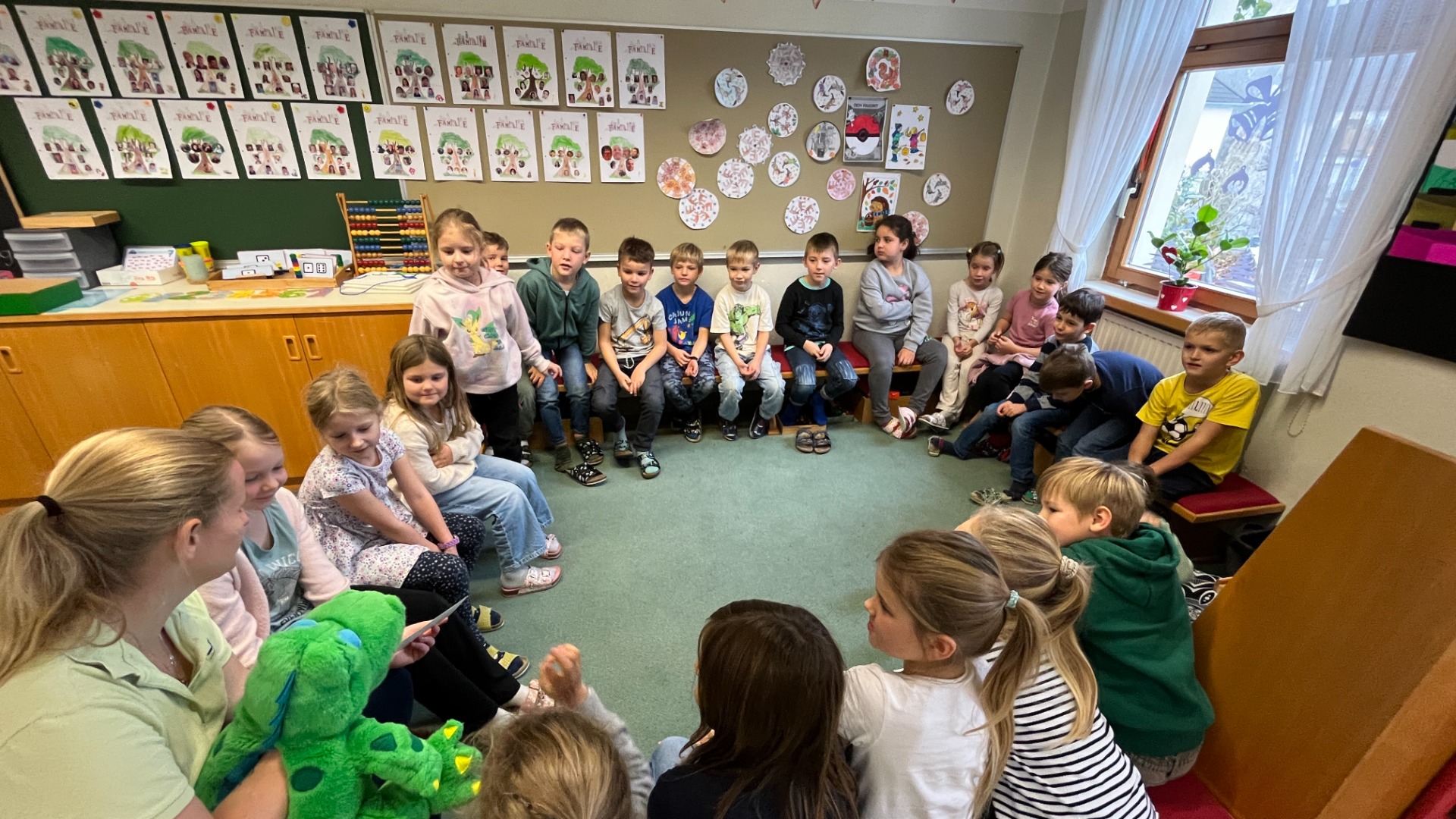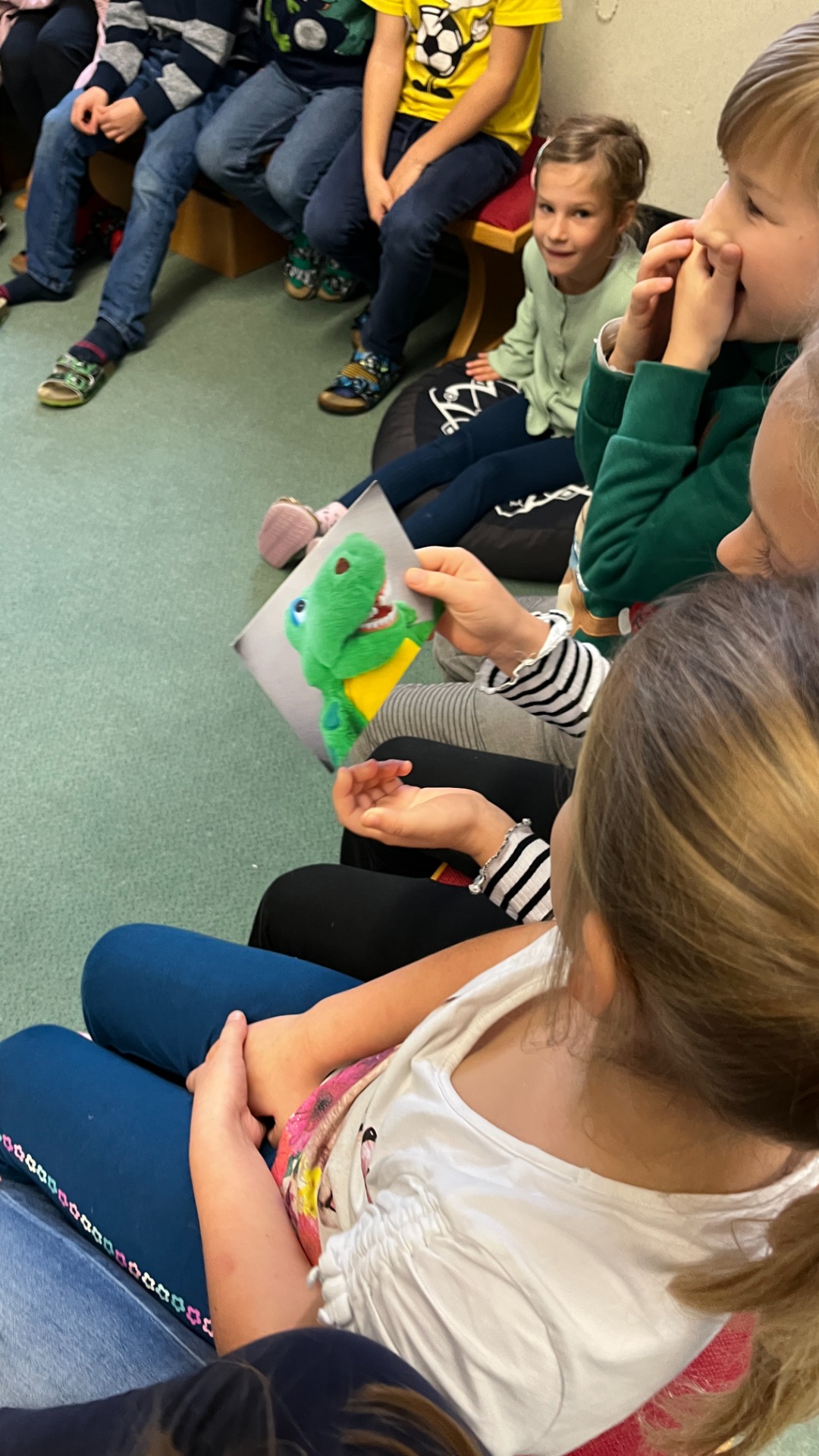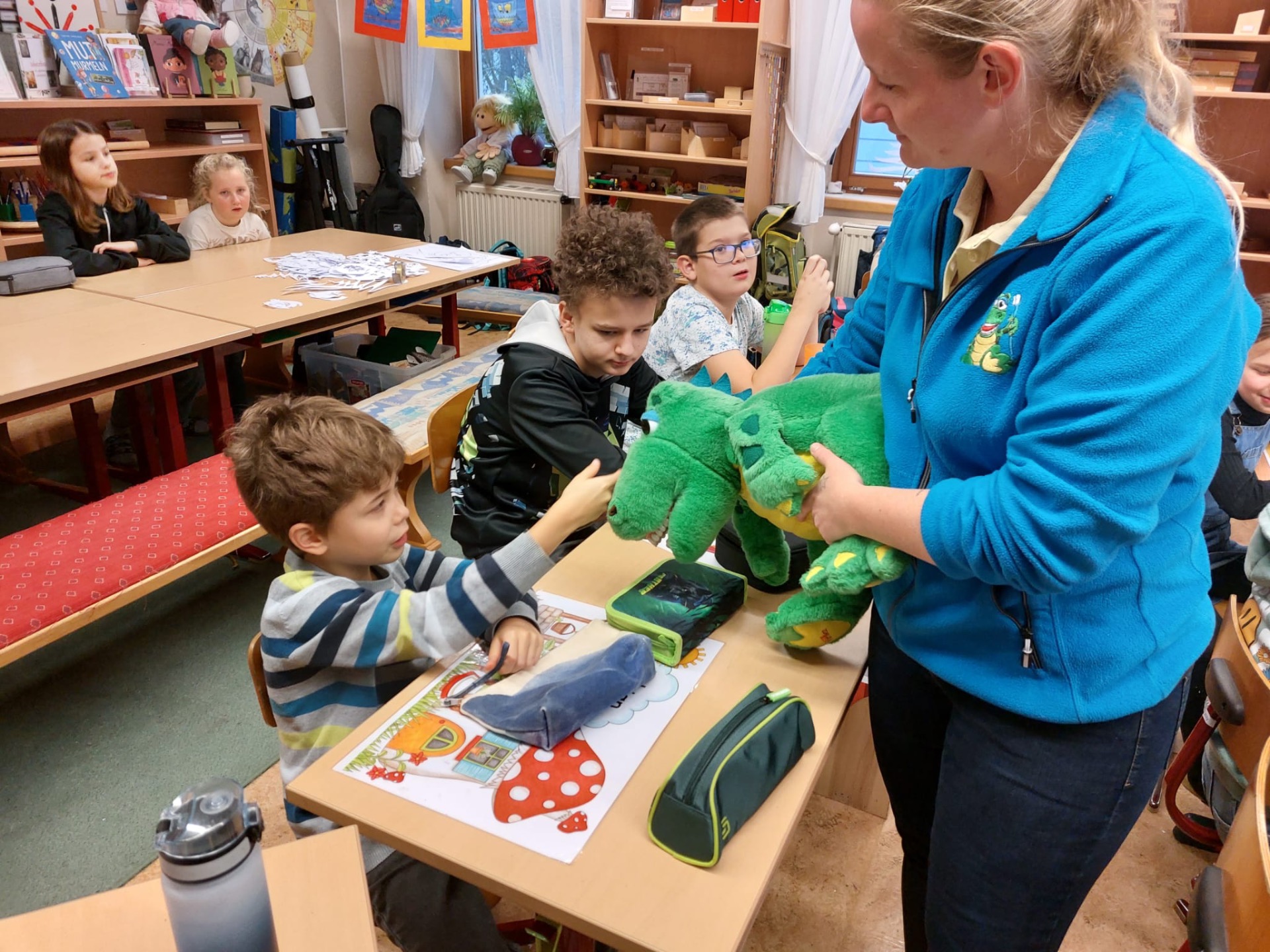 Die Kinder aller Klassen freuten sich sehr, Kroko auch heuer wieder zu treffen.