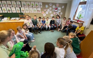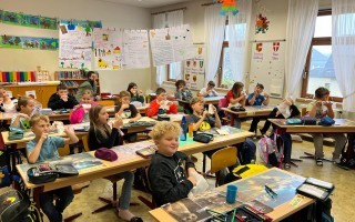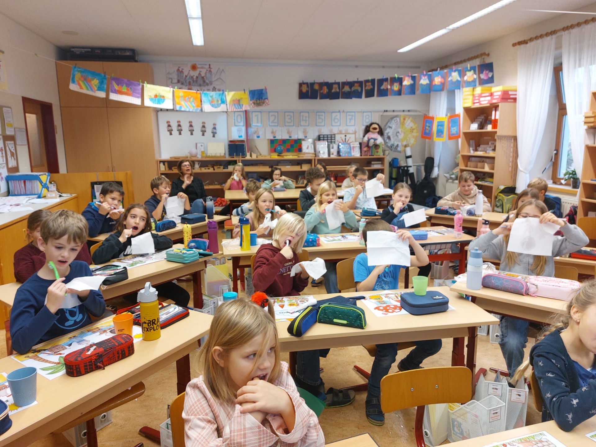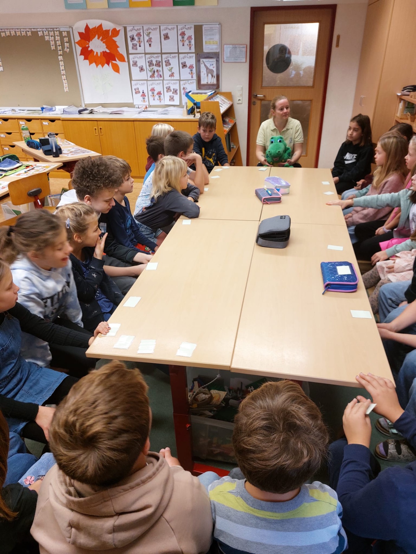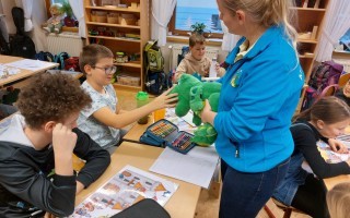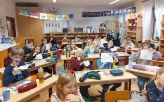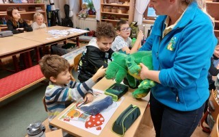 Die Kinder aller Klassen freuten sich sehr, Kroko auch heuer wieder zu treffen.