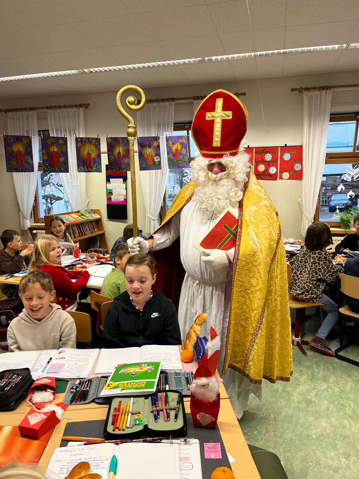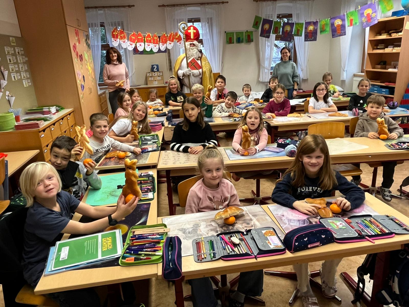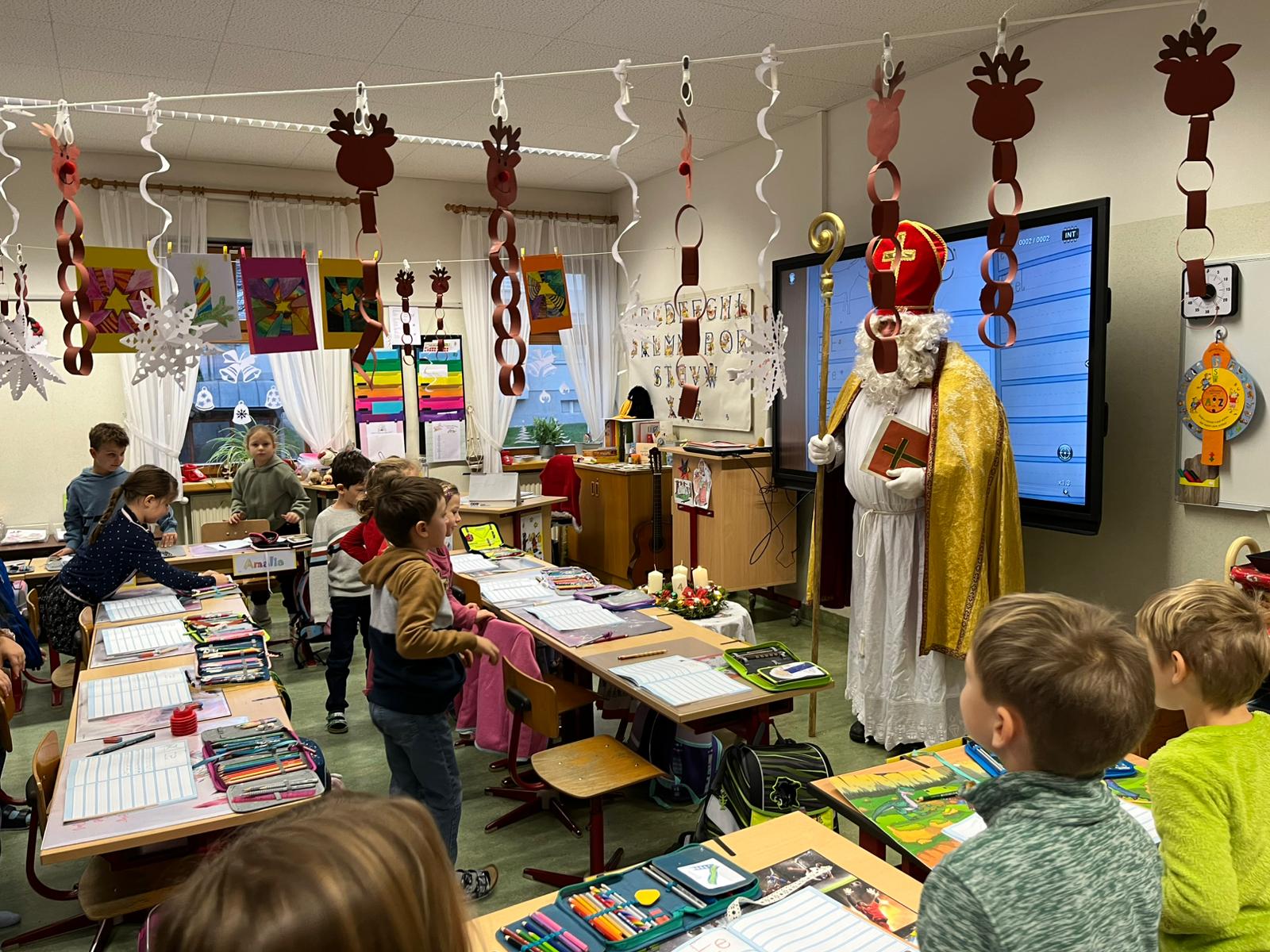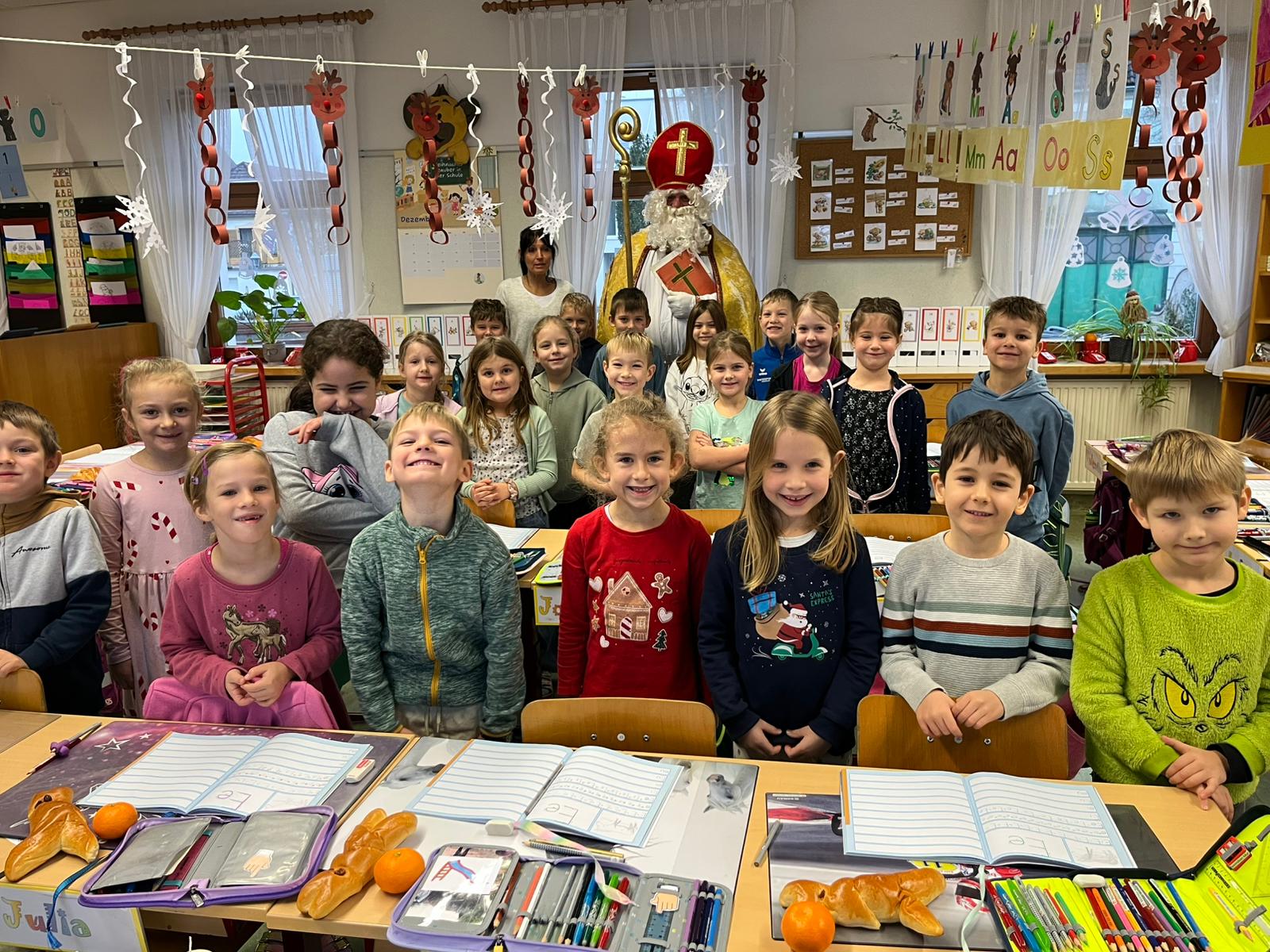 ... kommt der Nikolaus in jede Klasse, besucht die Kinder und ihre LehrerInnen und überbringt ihnen kleine Geschenke. Herzlichen Dank für den Besuch!