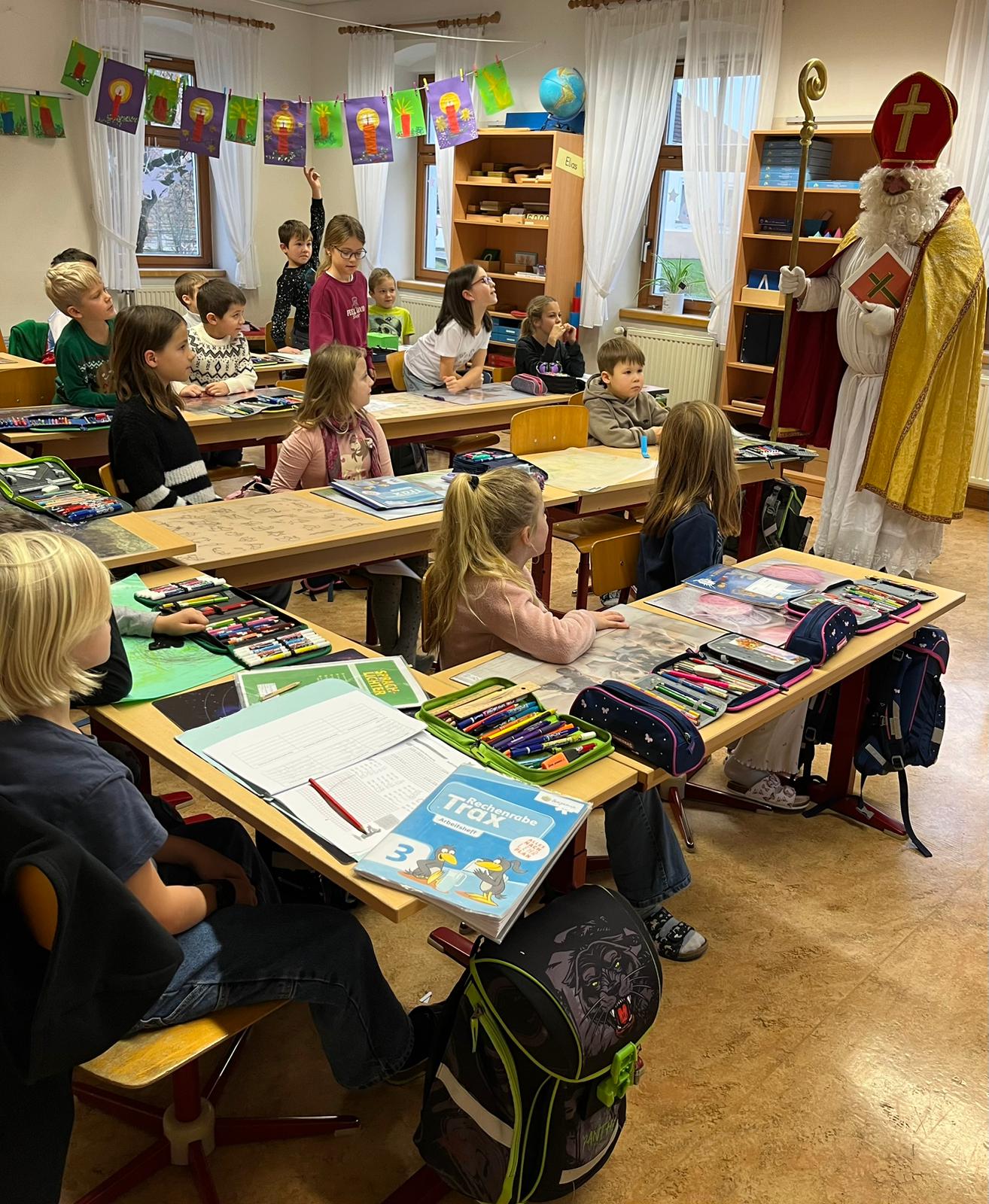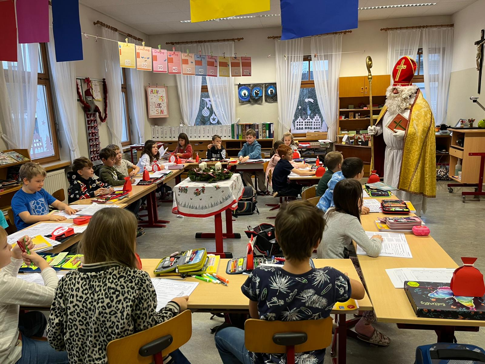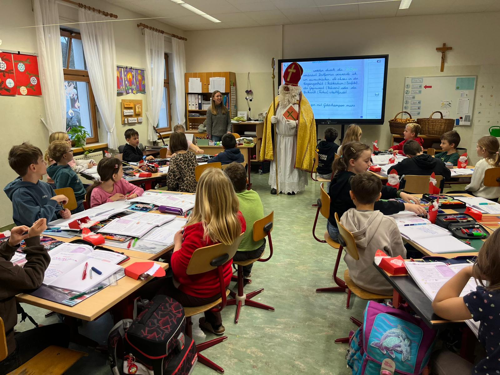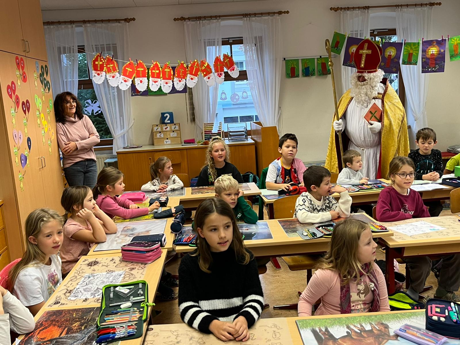 ... kommt der Nikolaus in jede Klasse, besucht die Kinder und ihre LehrerInnen und überbringt ihnen kleine Geschenke. Herzlichen Dank für den Besuch!