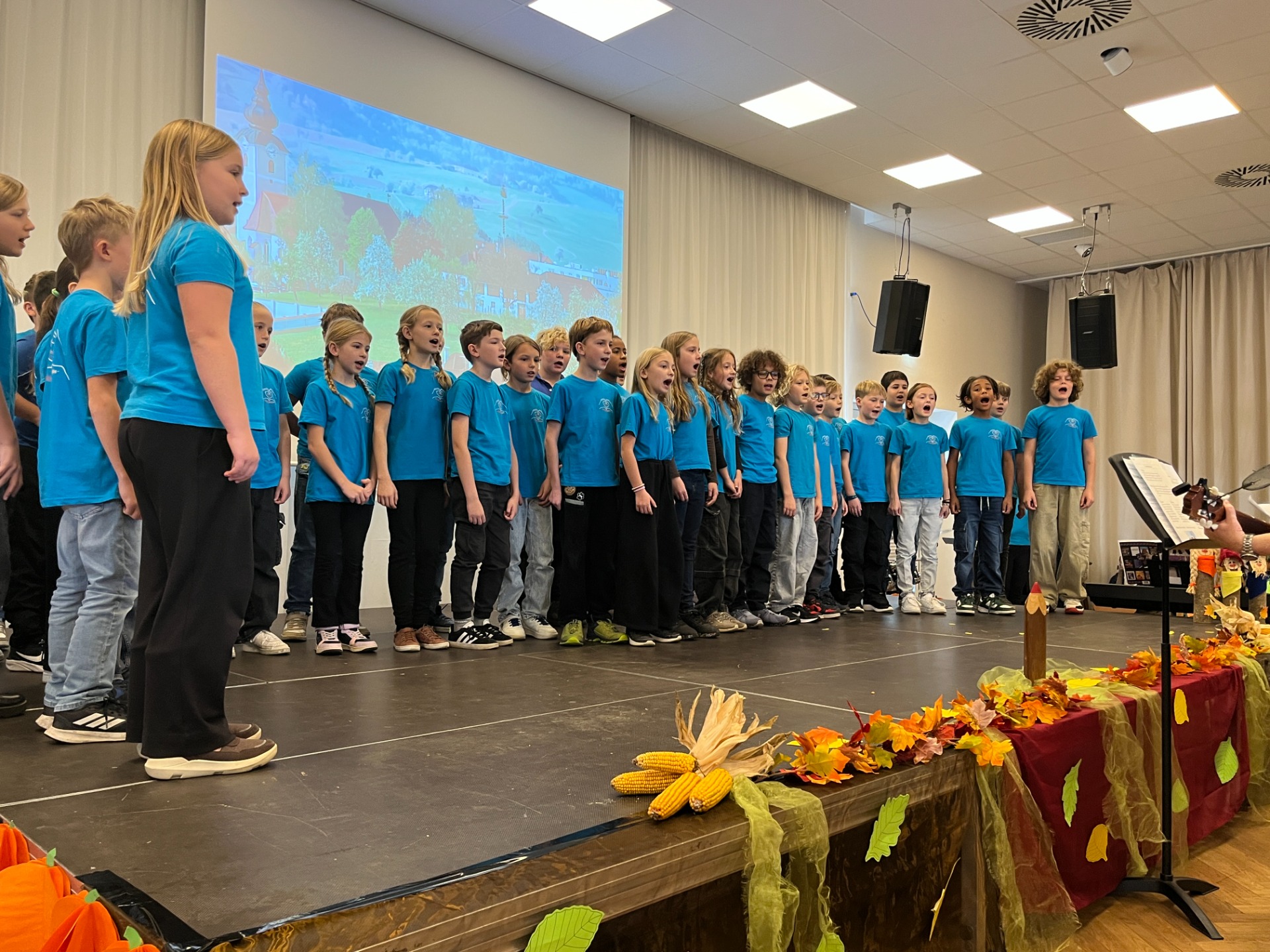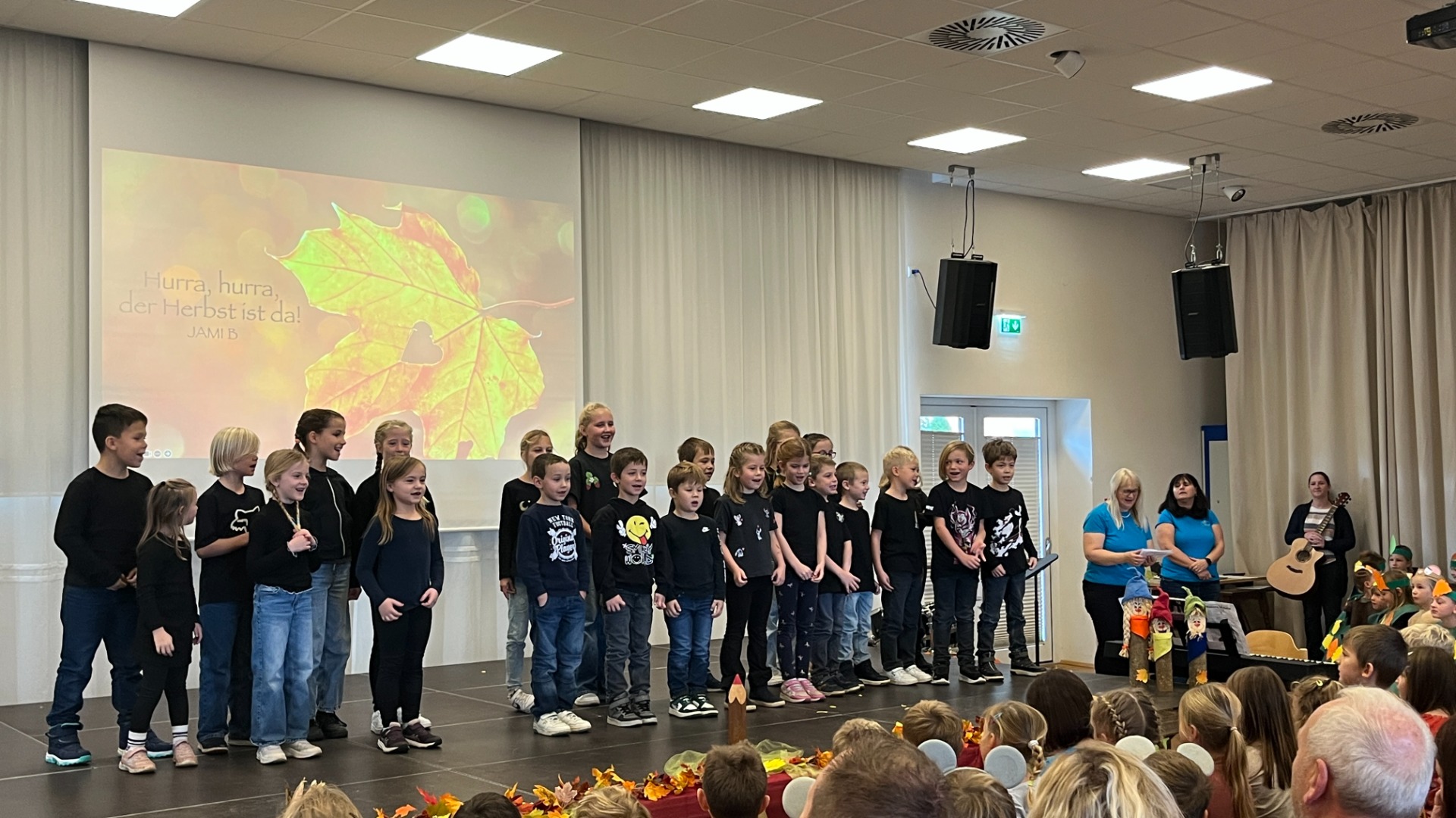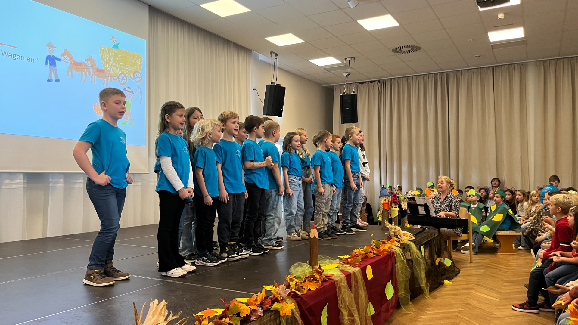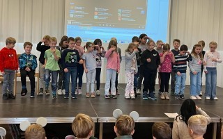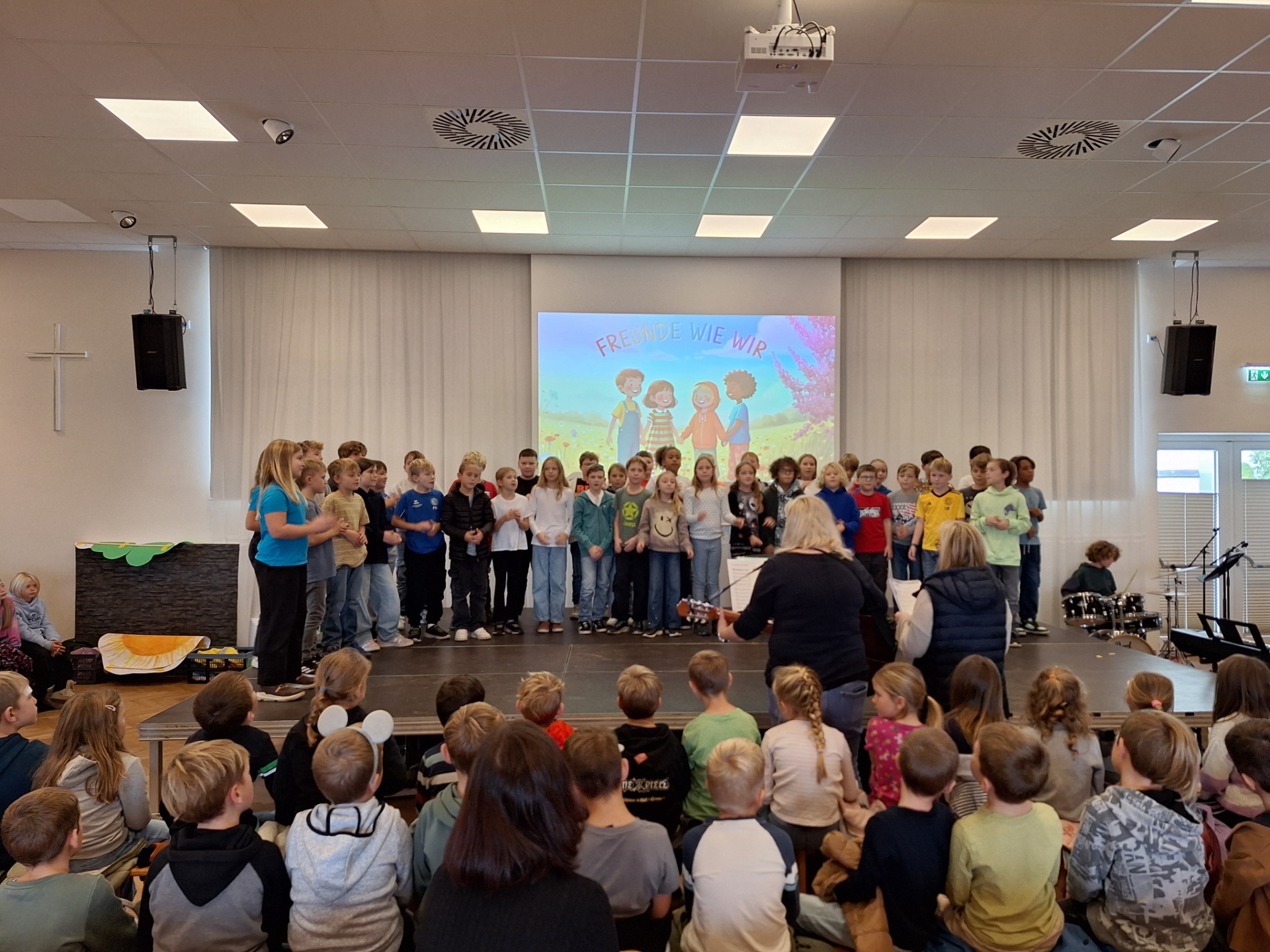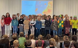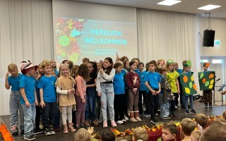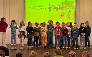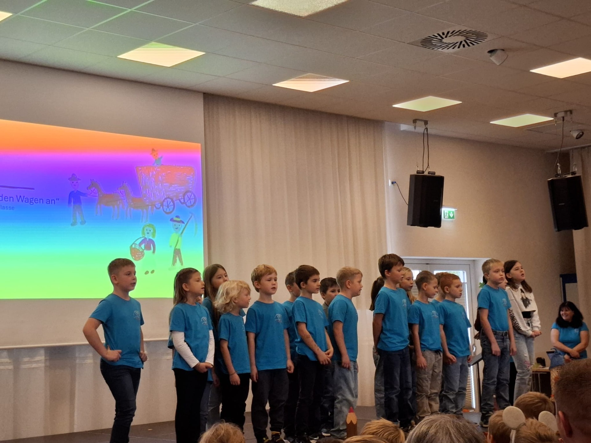 Bei den Liedern der gesamten Schulgemeinschaft sangen die Kinder sehr engagiert mit und bei den schwungvollen Liedern "Hakuna Matata" und "Freunde wie wir" strahlten die Gesichter der Sängerinnen und Sänger wie auch des Publikums.