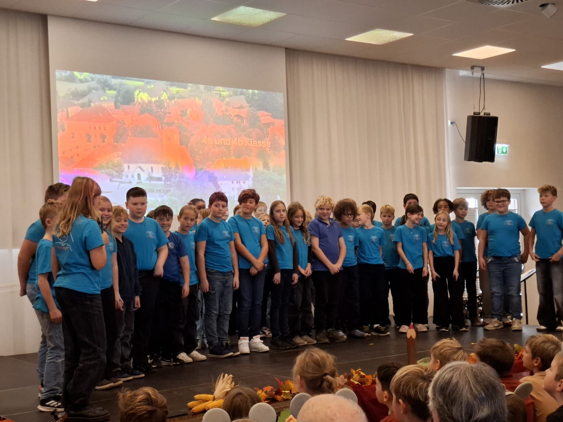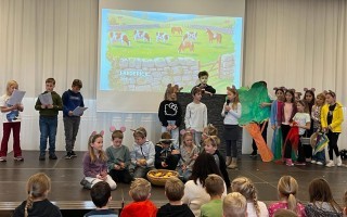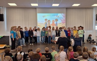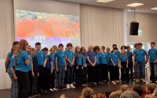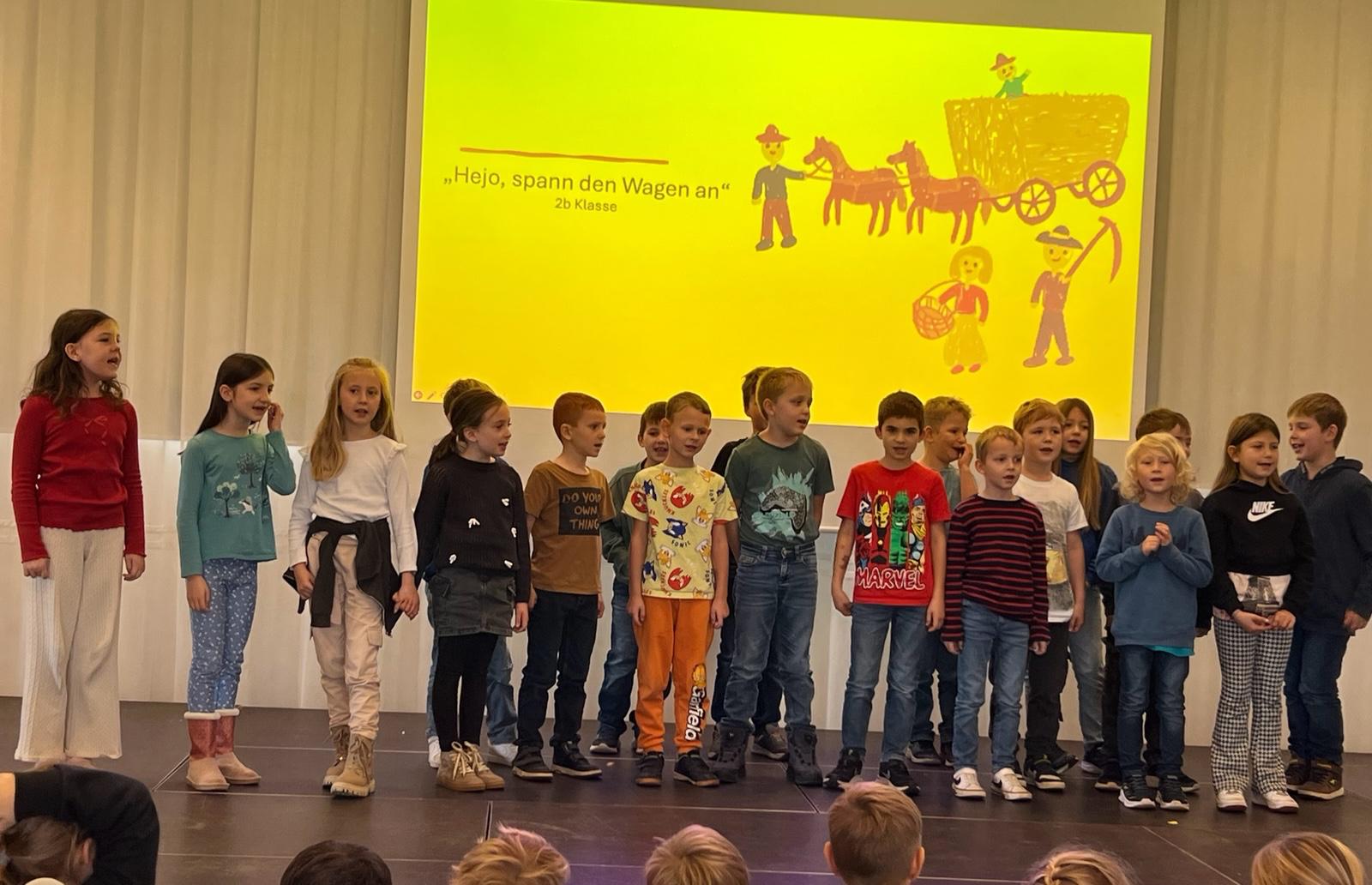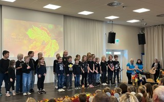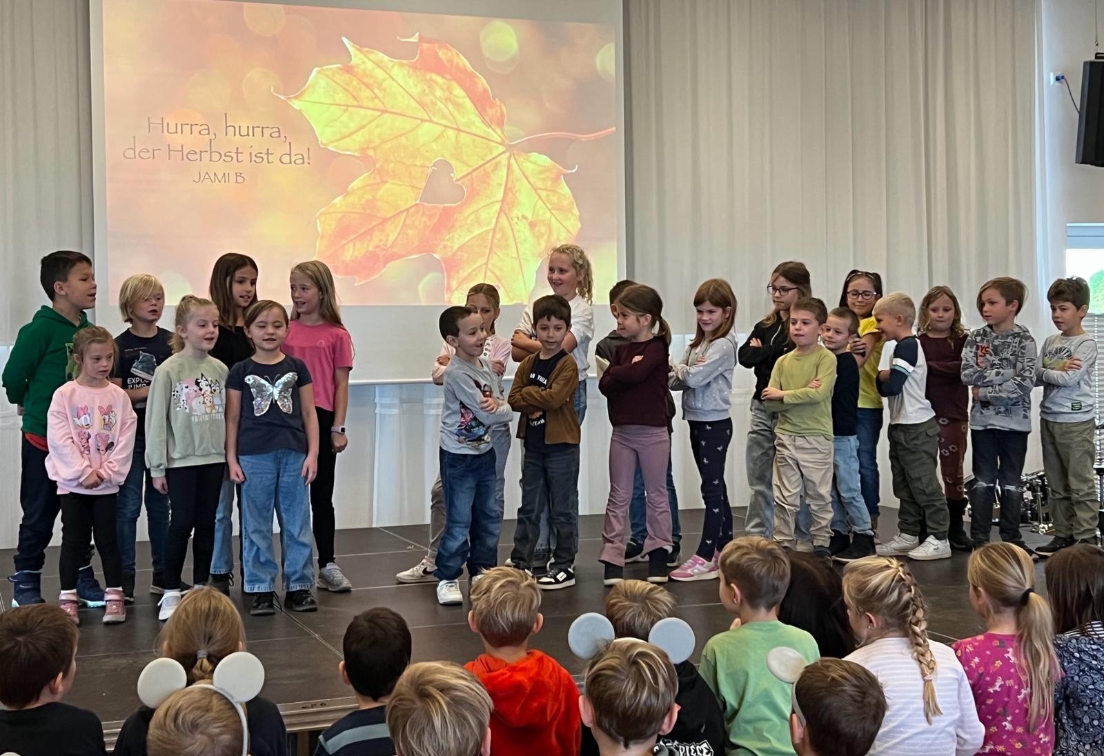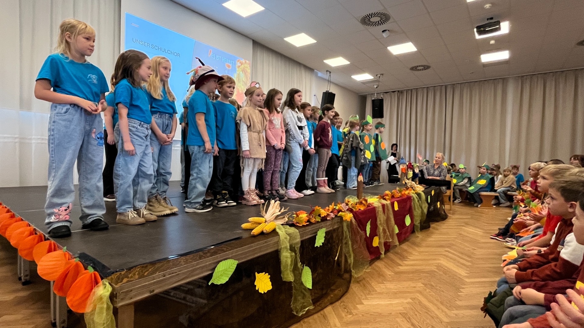 Bei den Liedern der gesamten Schulgemeinschaft sangen die Kinder sehr engagiert mit und bei den schwungvollen Liedern "Hakuna Matata" und "Freunde wie wir" strahlten die Gesichter der Sängerinnen und Sänger wie auch des Publikums.