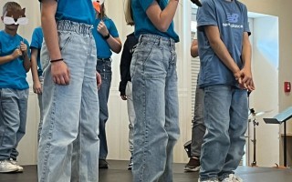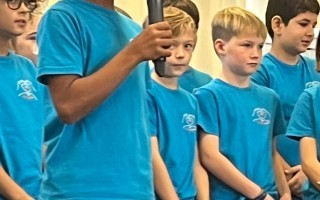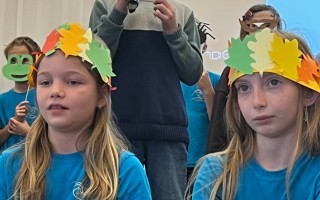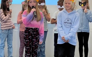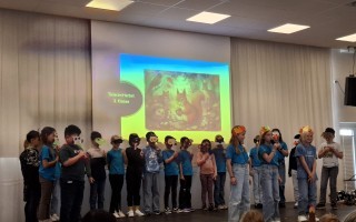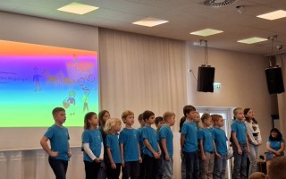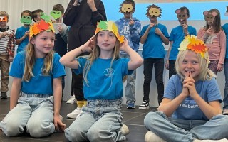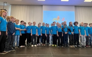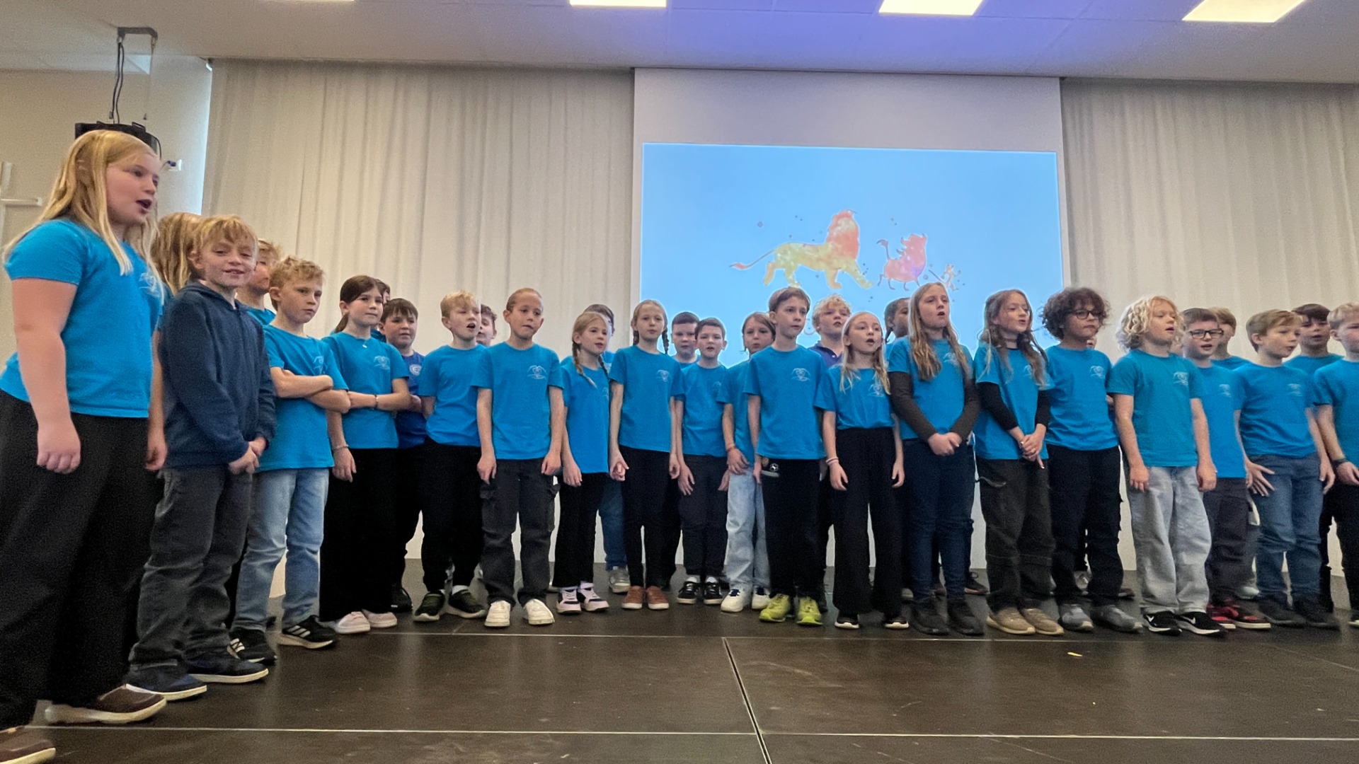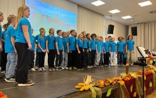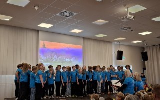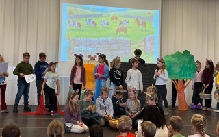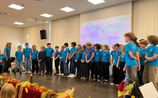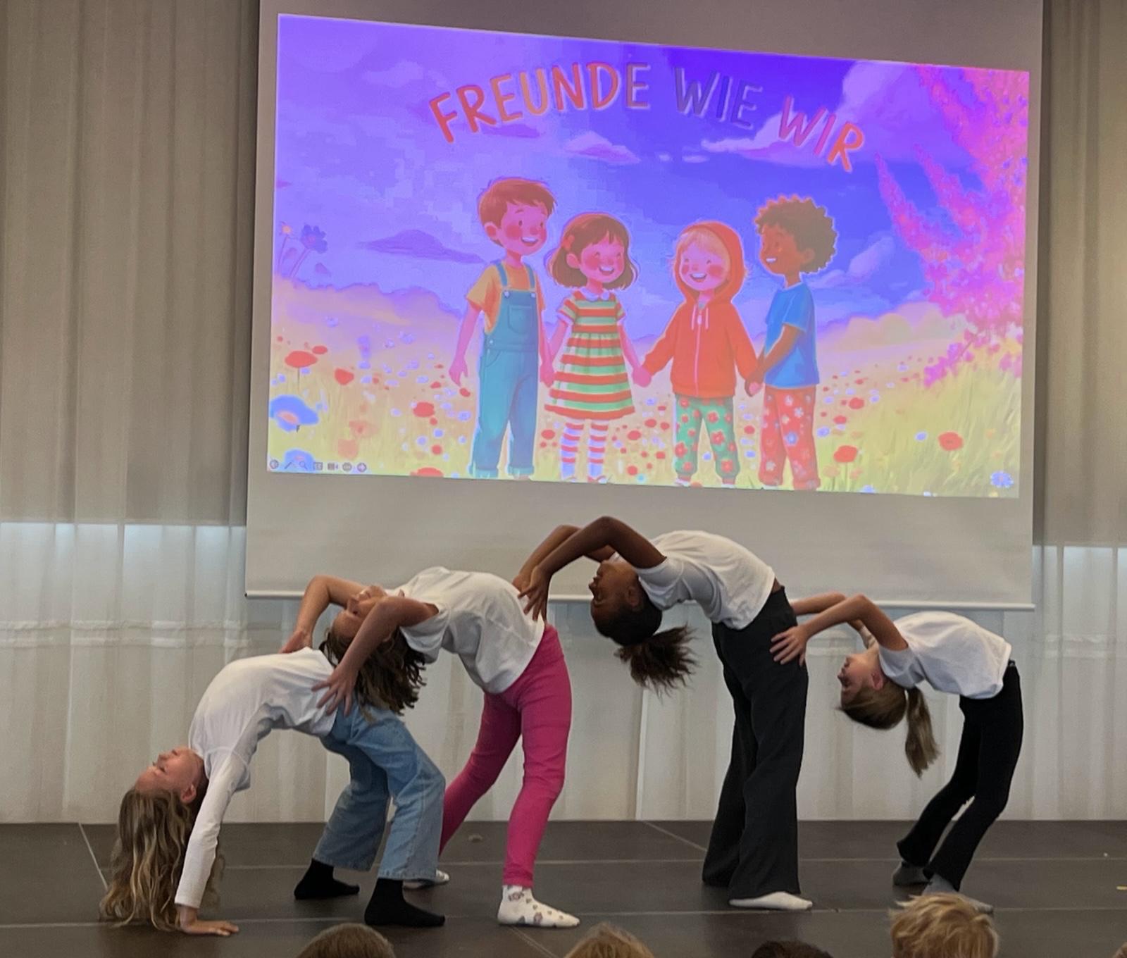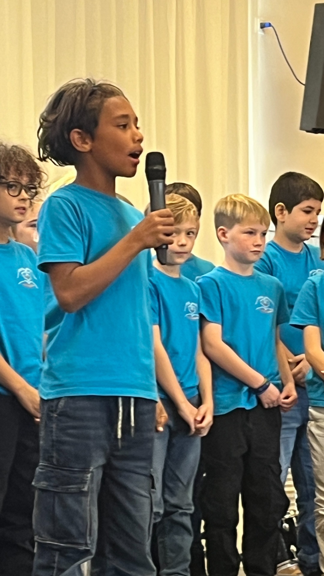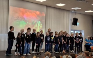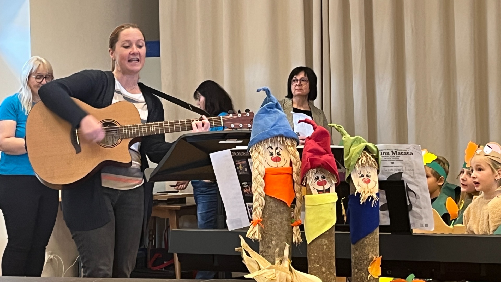 Bei den Liedern der gesamten Schulgemeinschaft sangen die Kinder sehr engagiert mit und bei den schwungvollen Liedern "Hakuna Matata" und "Freunde wie wir" strahlten die Gesichter der Sängerinnen und Sänger wie auch des Publikums.