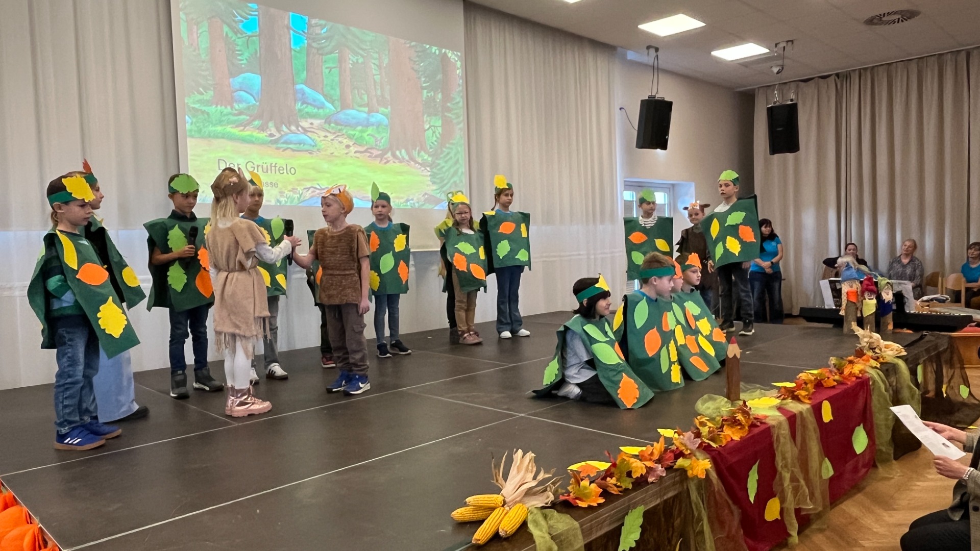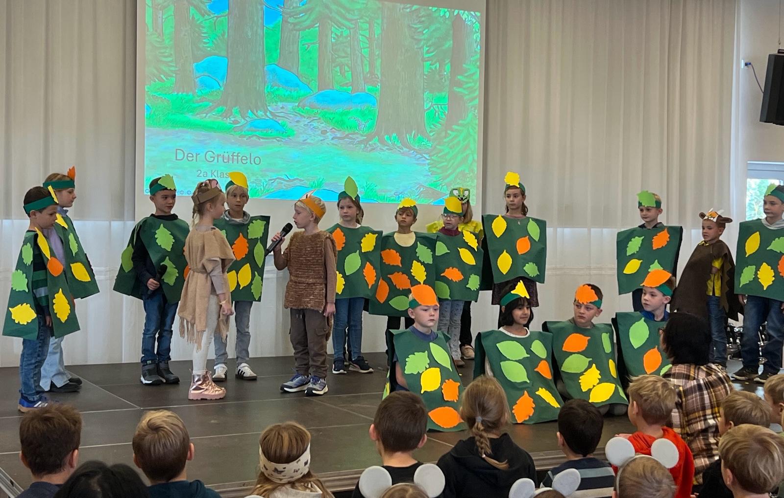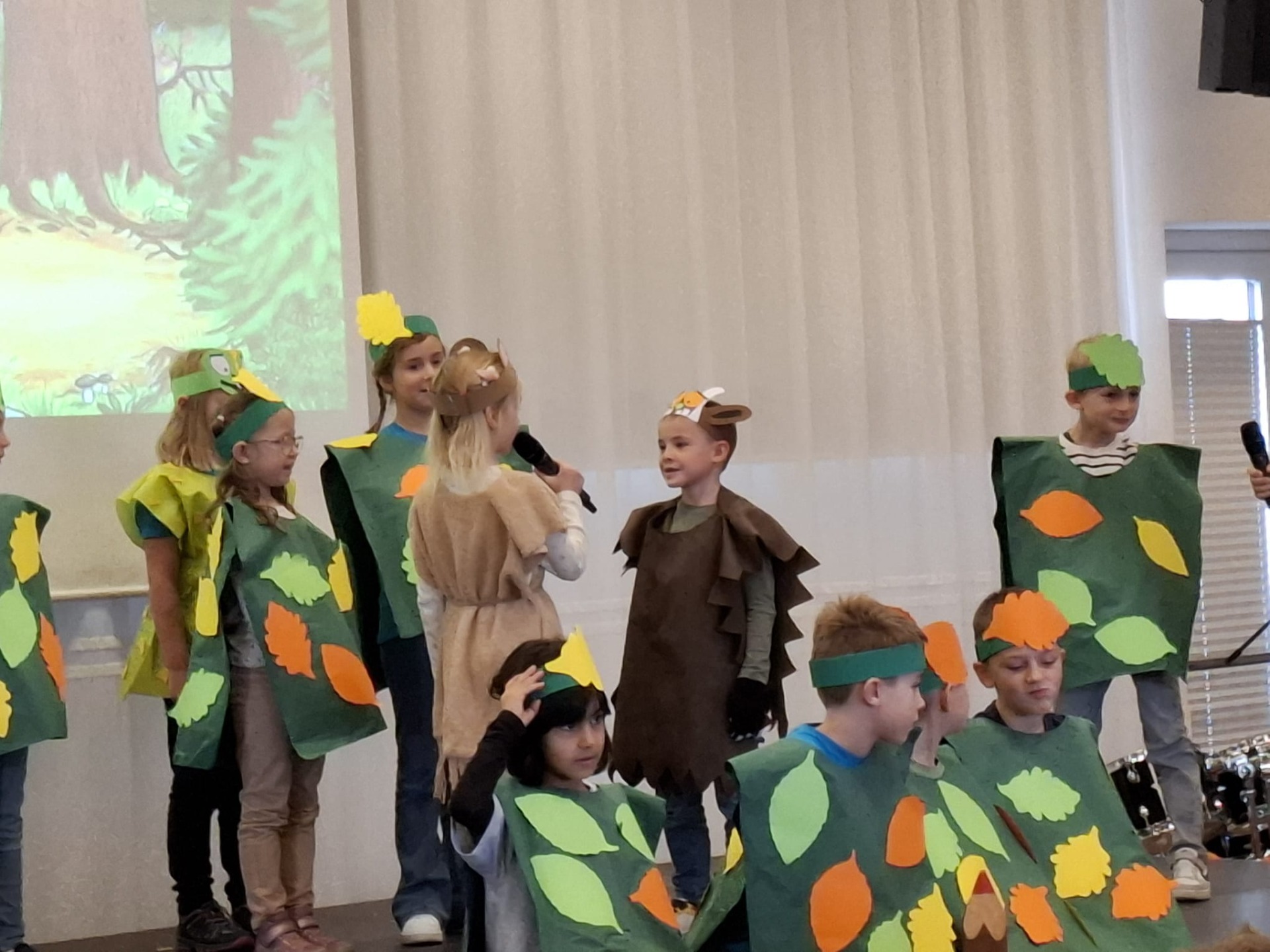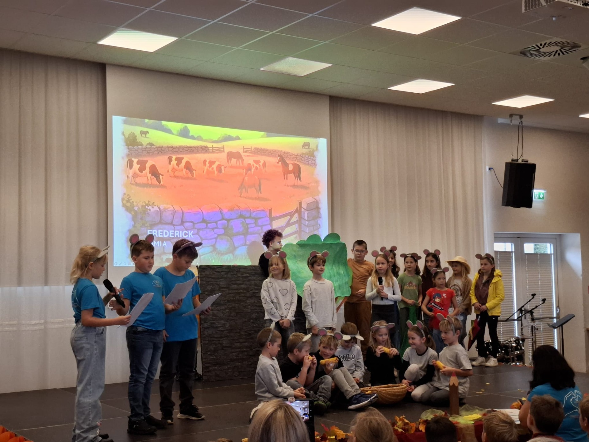 Der Bogen des Programms spannte sich von Herbstgedichten, Herbstliedern, Raps über zwei Theaterstücke ("Der Grüffelo", "Frederick") bis hin zu einem Euratsfeld - Schwerpunkt (Euratsfelder Gedichte, Euratsfelder Lied) wie ein bunter Regenbogen.