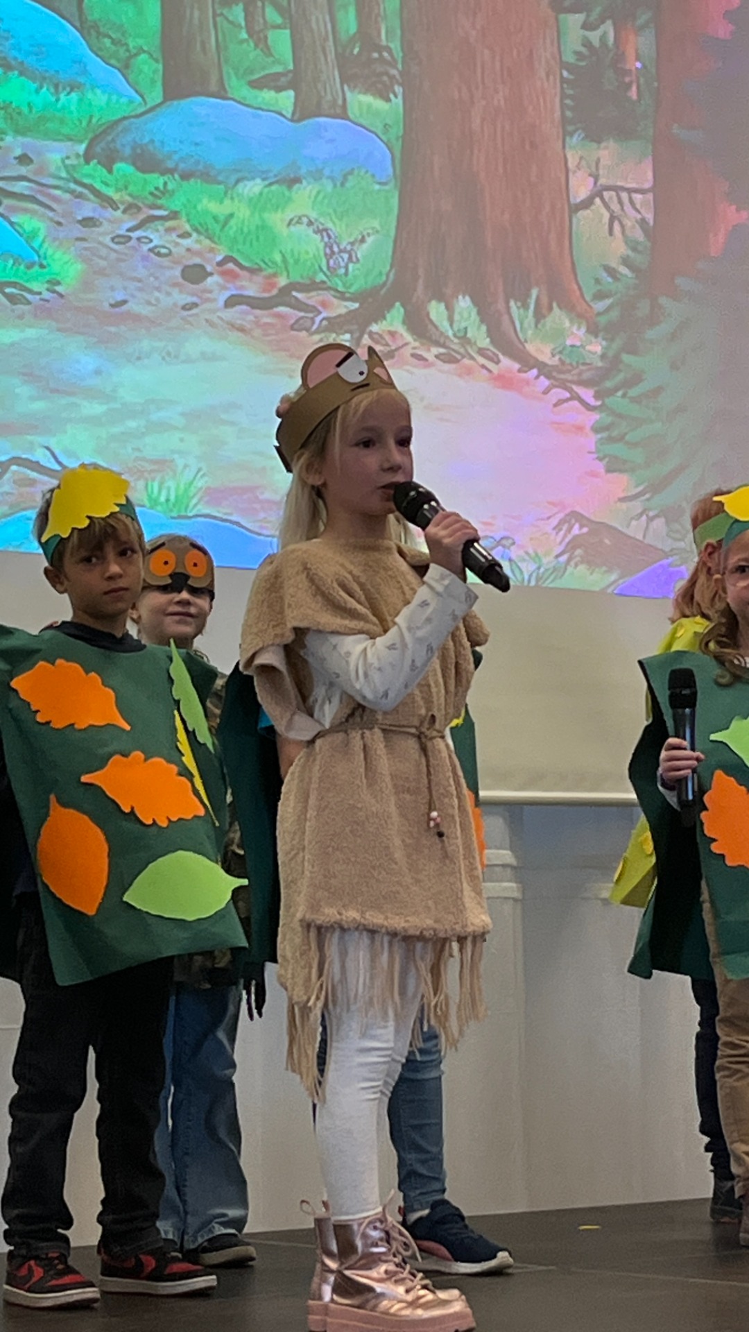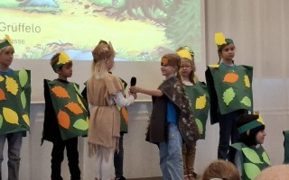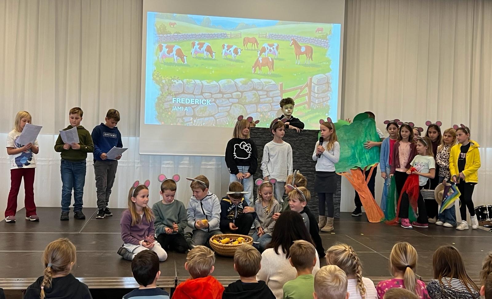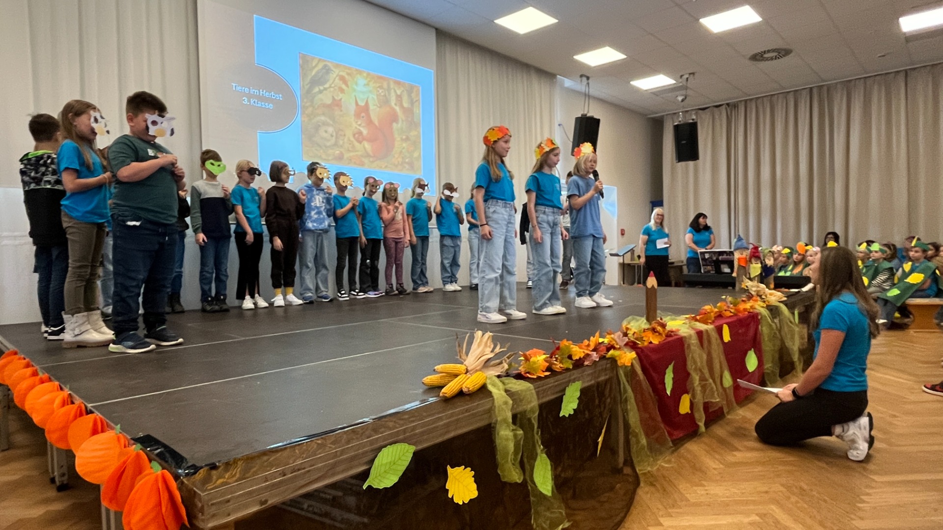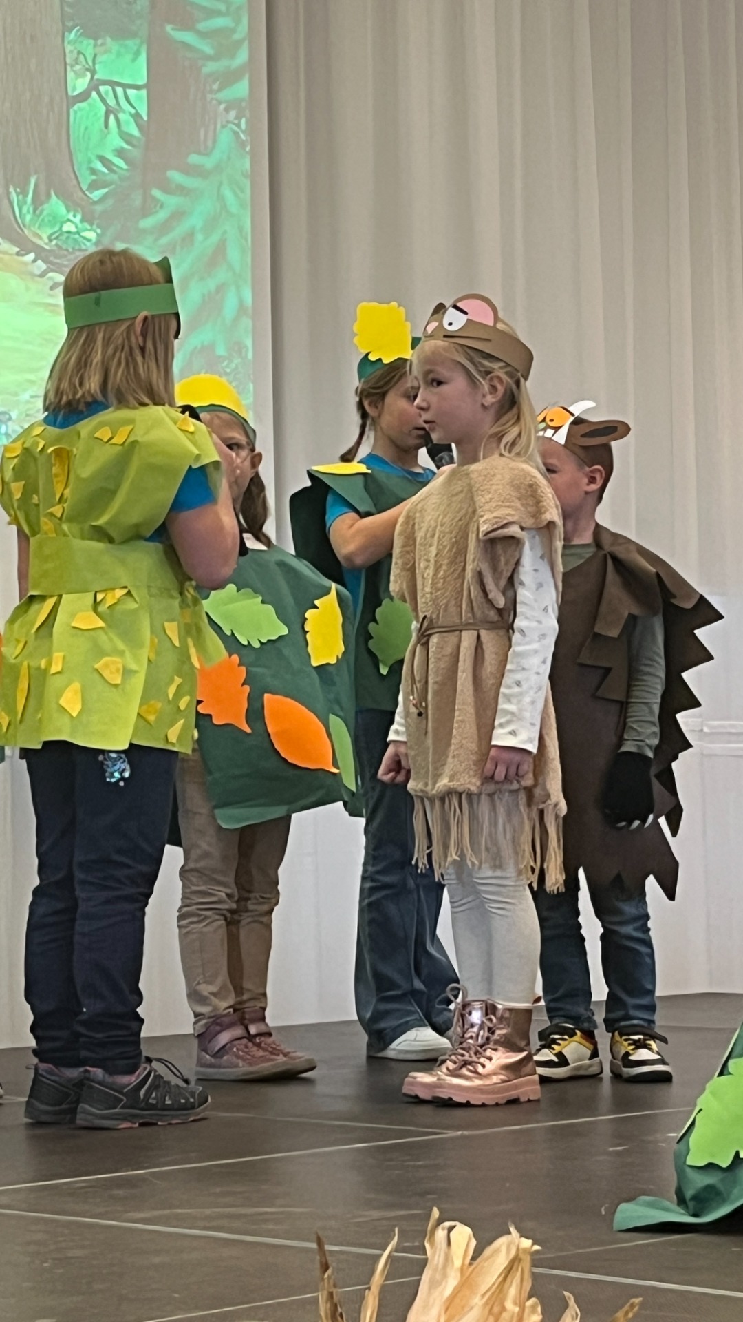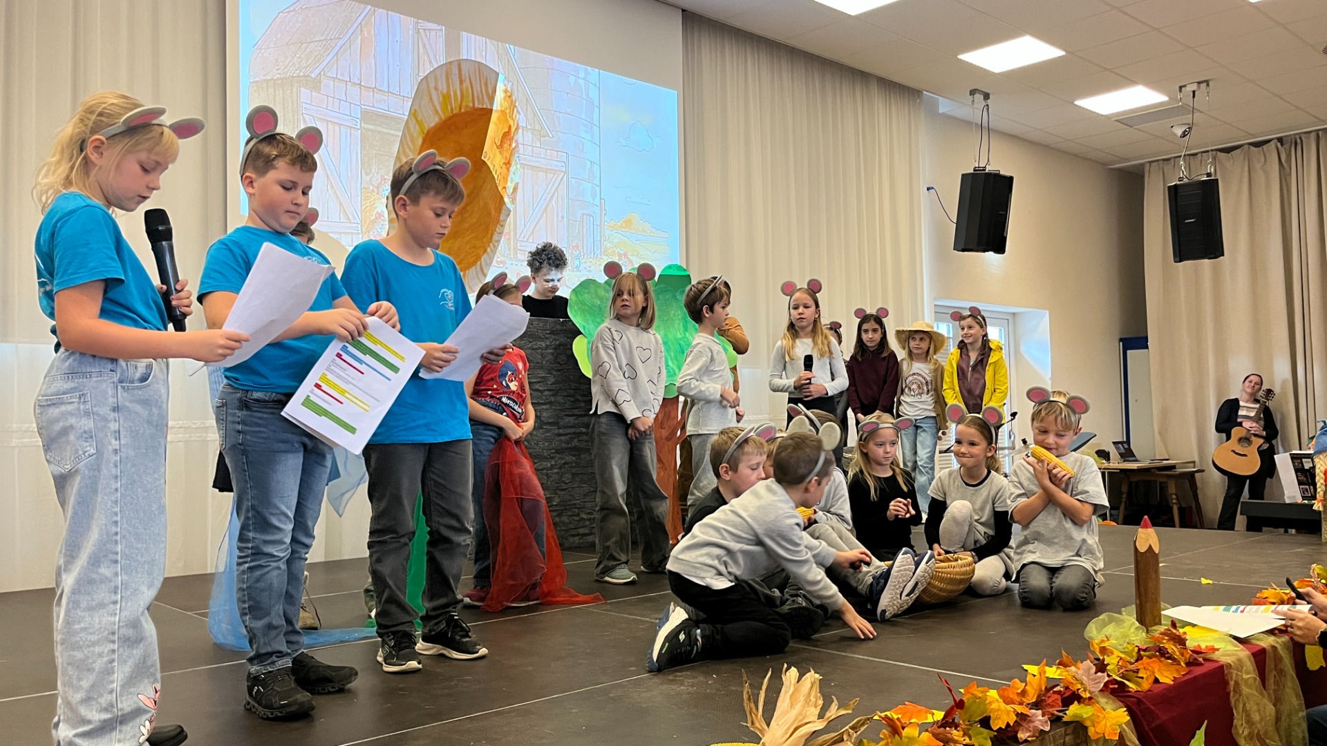 Der Bogen des Programms spannte sich von Herbstgedichten, Herbstliedern, Raps über zwei Theaterstücke ("Der Grüffelo", "Frederick") bis hin zu einem Euratsfeld - Schwerpunkt (Euratsfelder Gedichte, Euratsfelder Lied) wie ein bunter Regenbogen.
