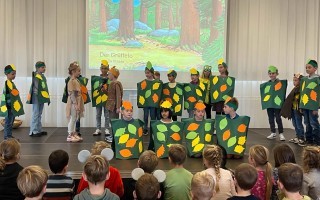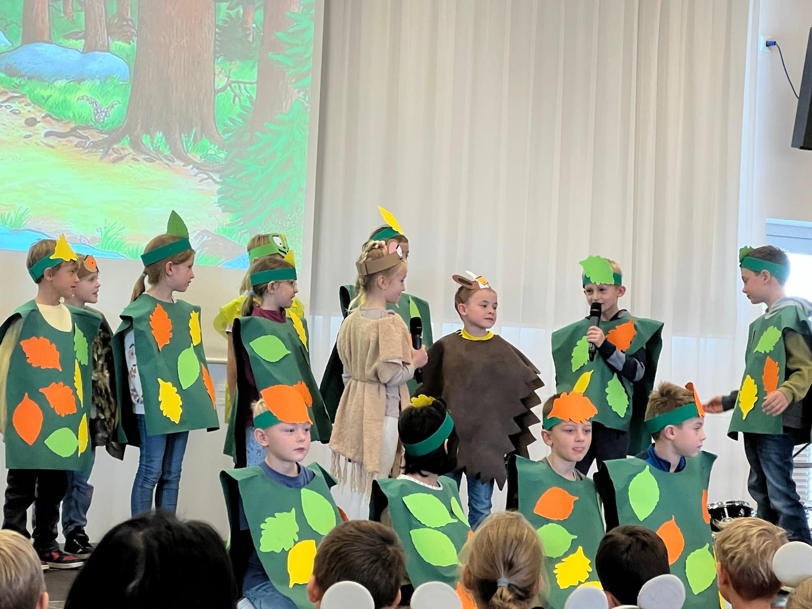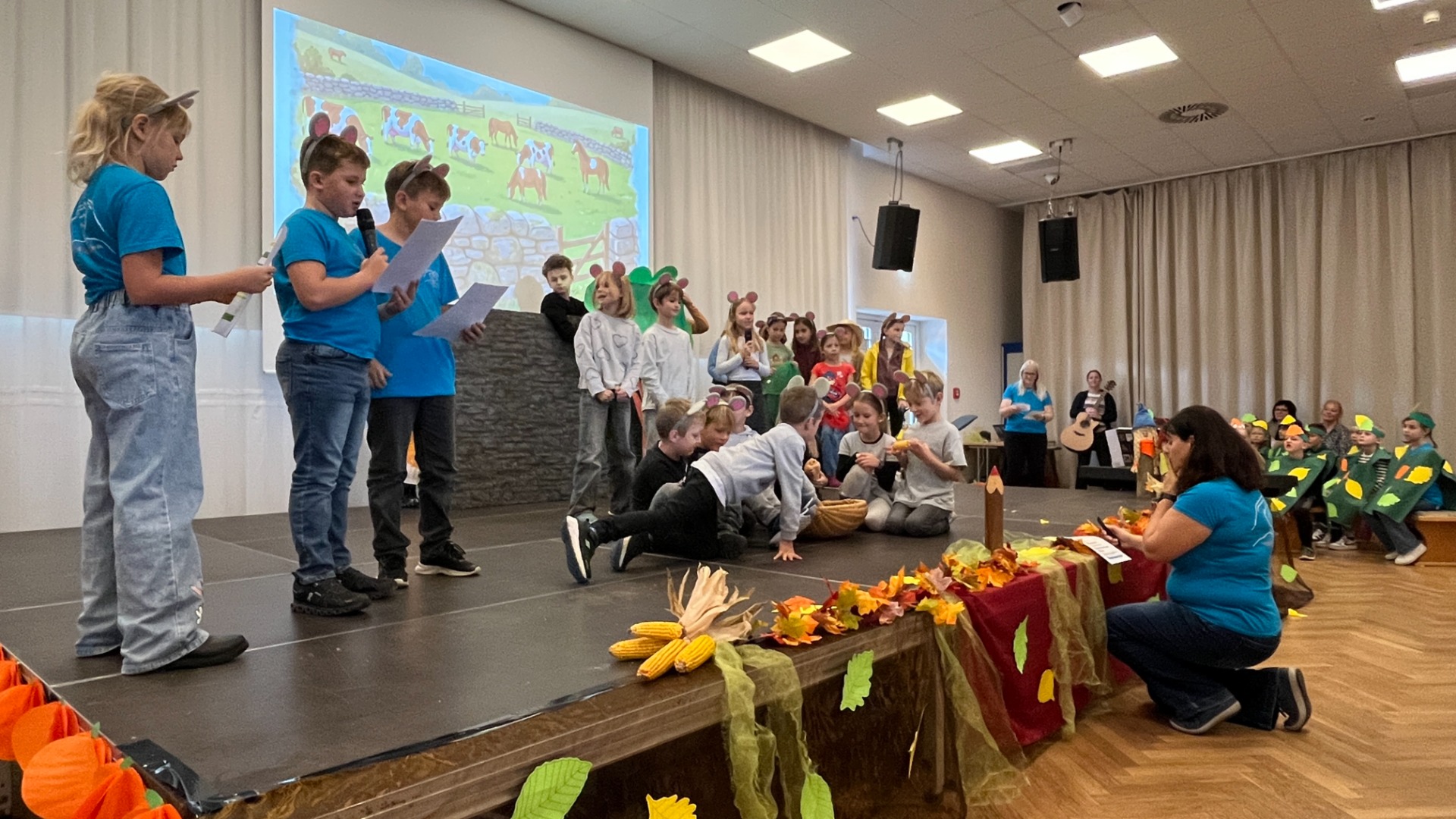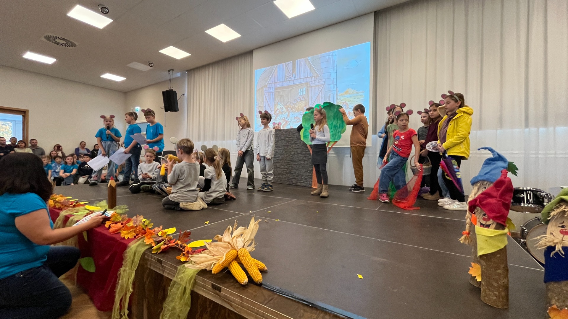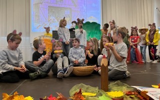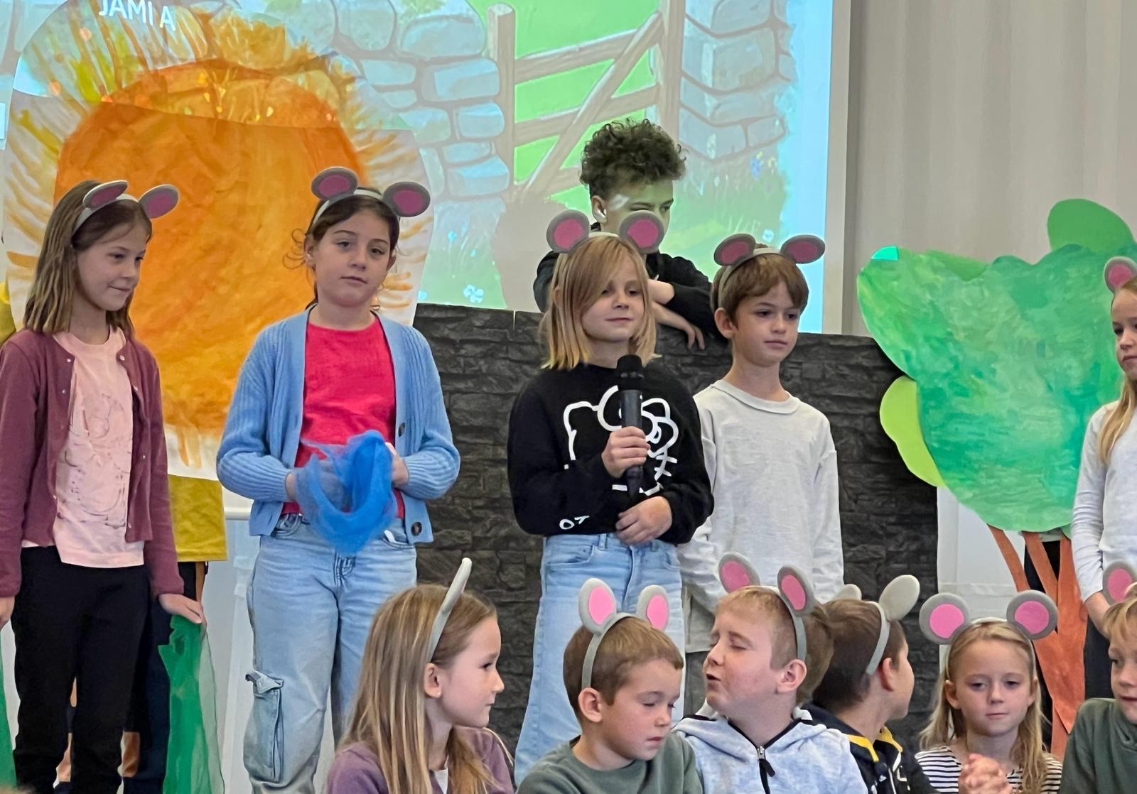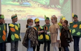 Der Bogen des Programms spannte sich von Herbstgedichten, Herbstliedern, Raps über zwei Theaterstücke ("Der Grüffelo", "Frederick") bis hin zu einem Euratsfeld - Schwerpunkt (Euratsfelder Gedichte, Euratsfelder Lied) wie ein bunter Regenbogen.