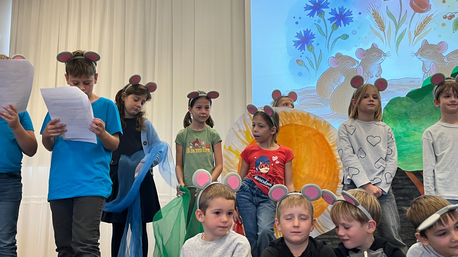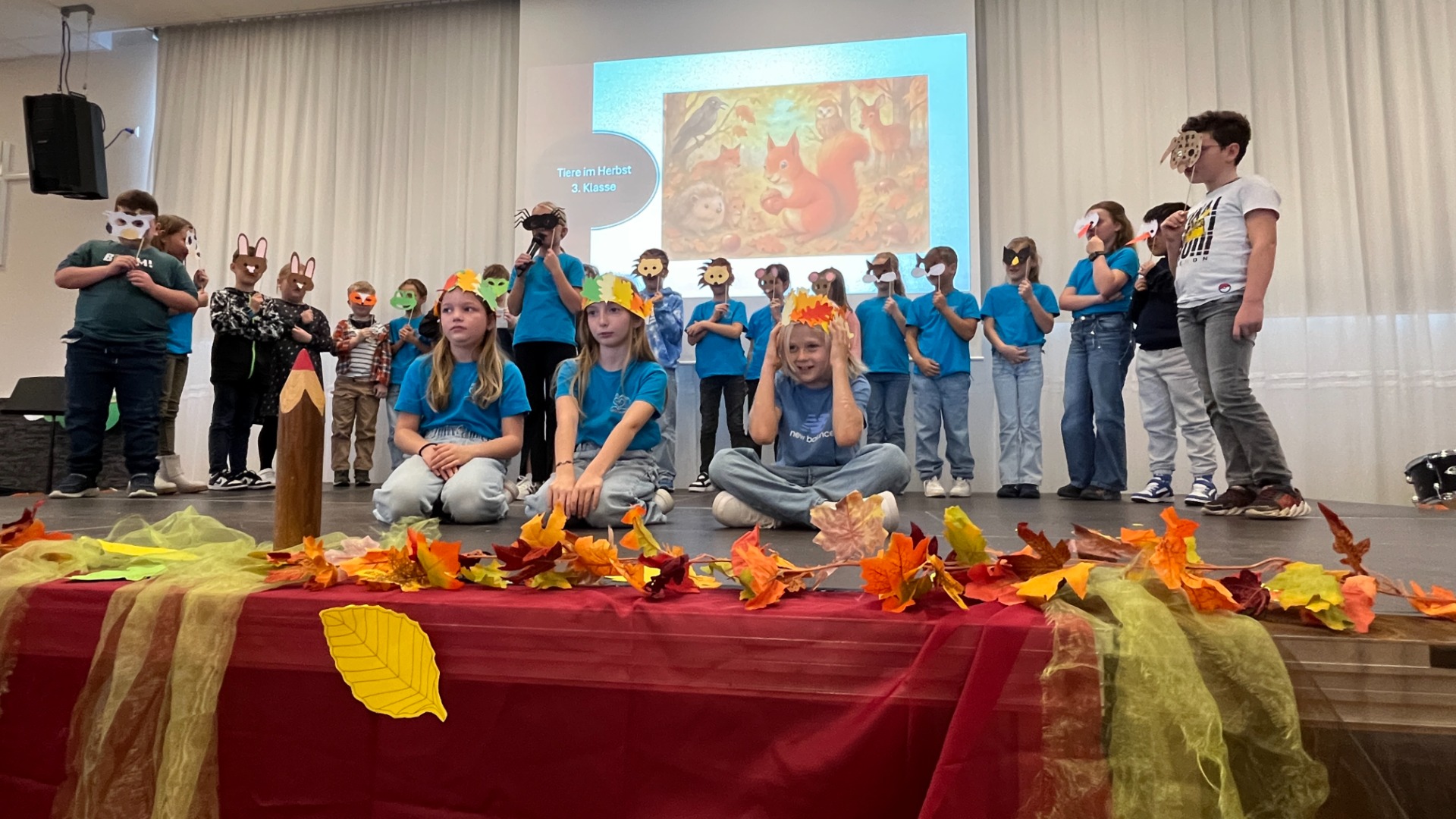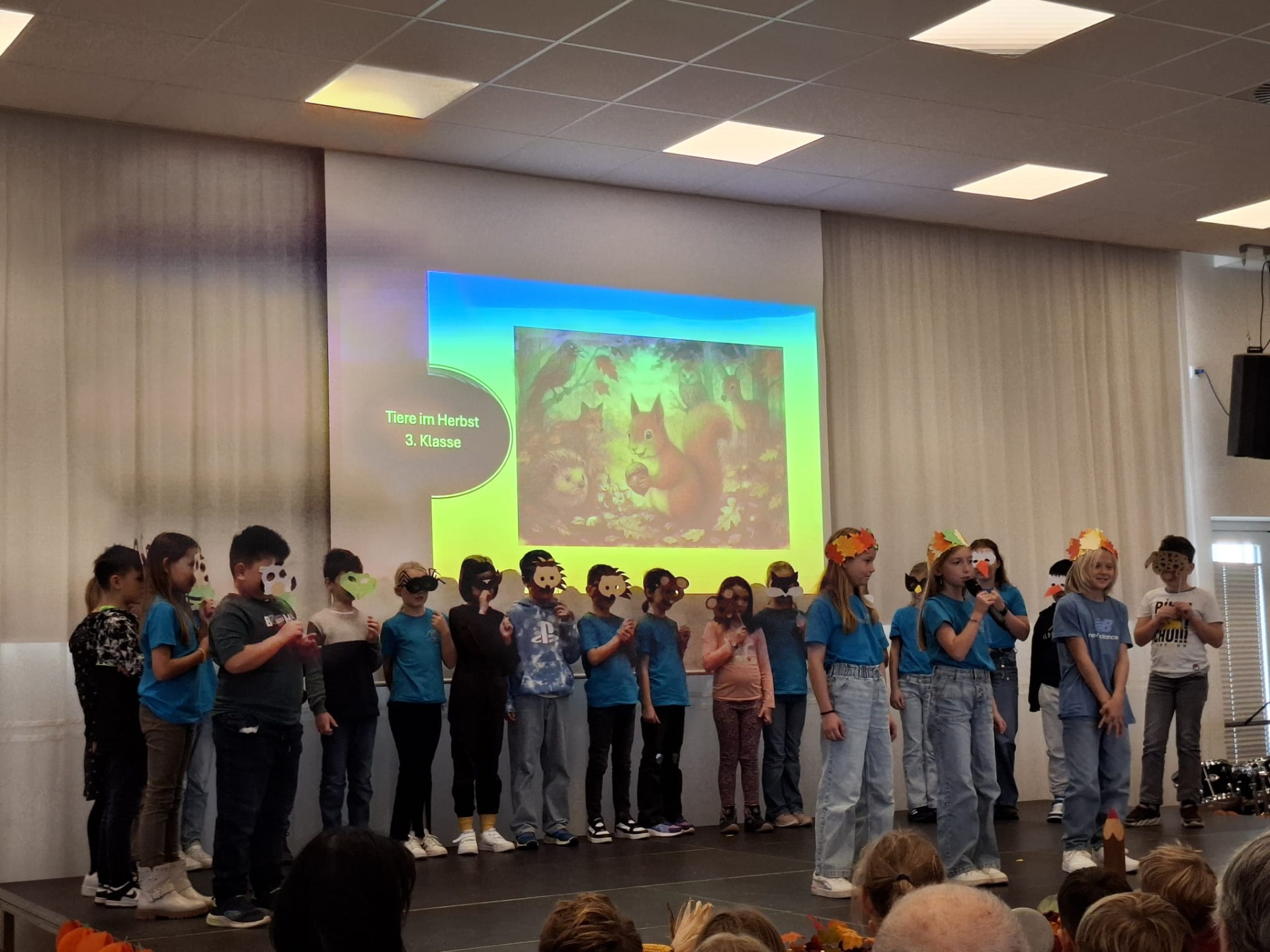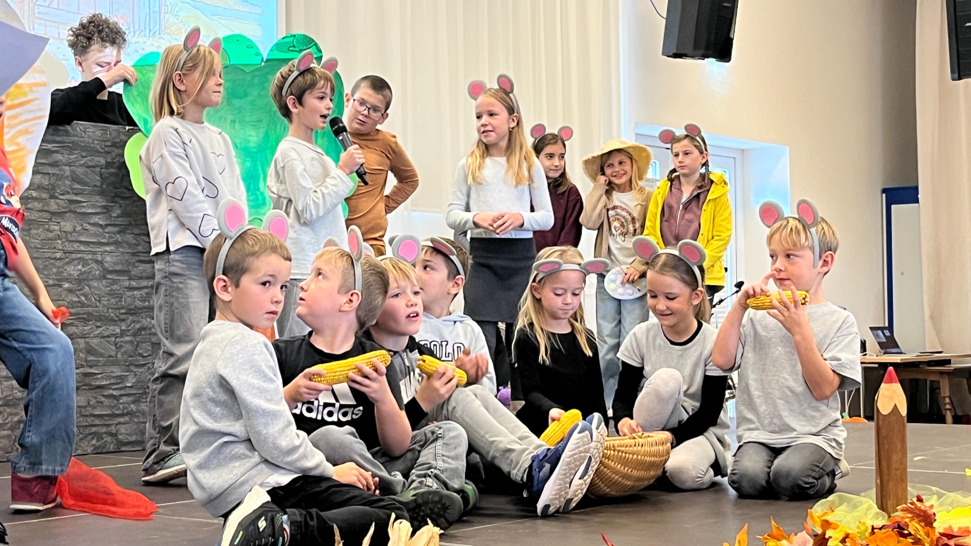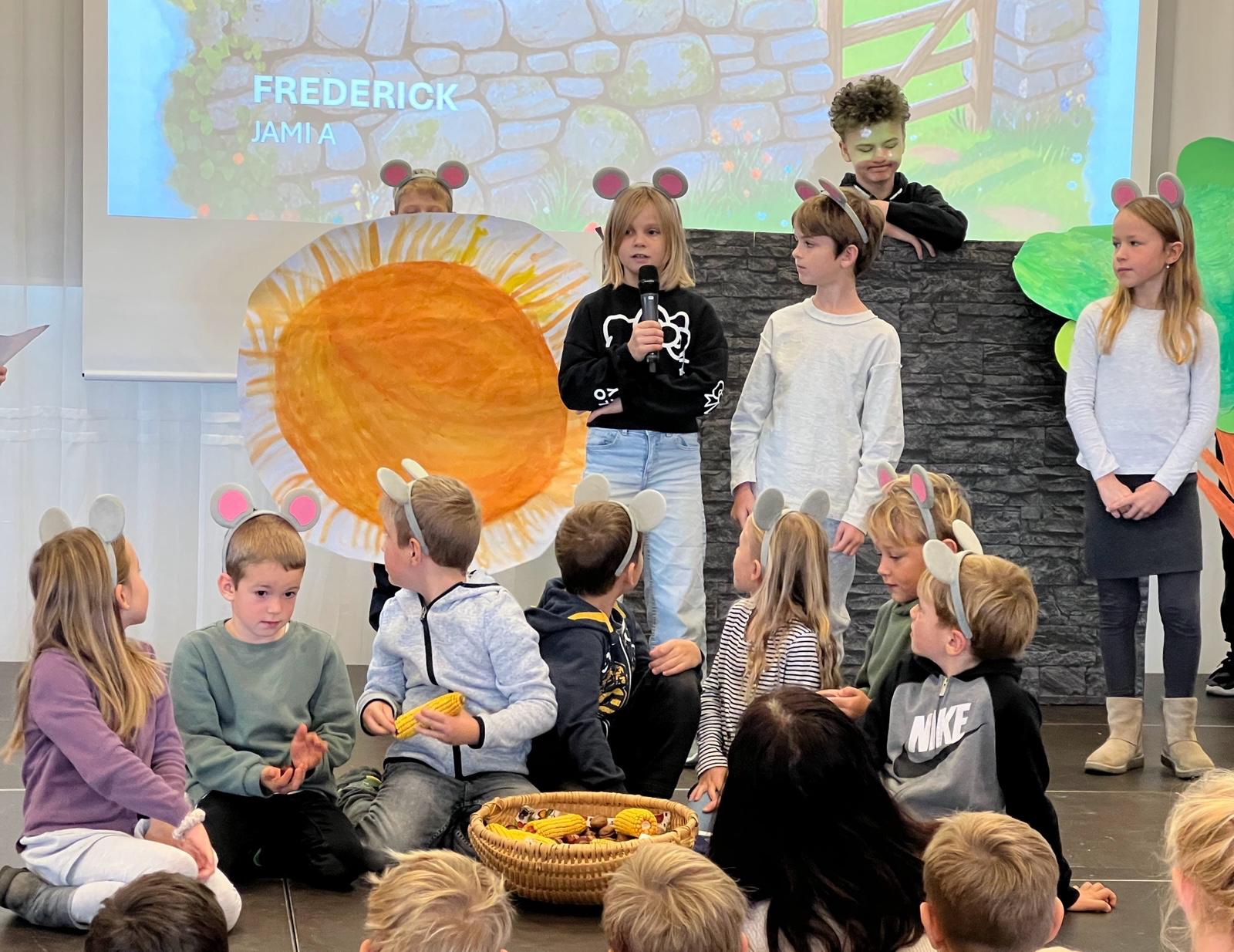 Der Bogen des Programms spannte sich von Herbstgedichten, Herbstliedern, Raps über zwei Theaterstücke ("Der Grüffelo", "Frederick") bis hin zu einem Euratsfeld - Schwerpunkt (Euratsfelder Gedichte, Euratsfelder Lied) wie ein bunter Regenbogen.