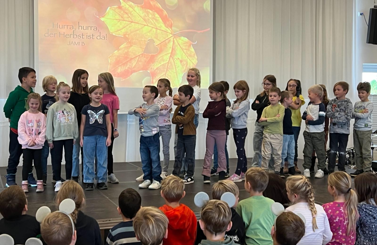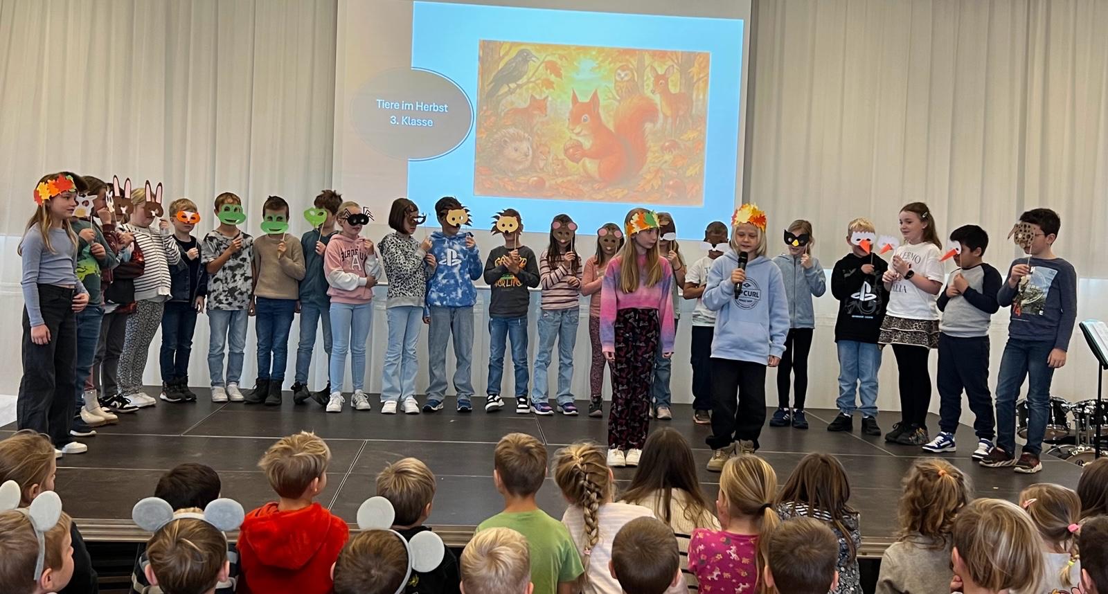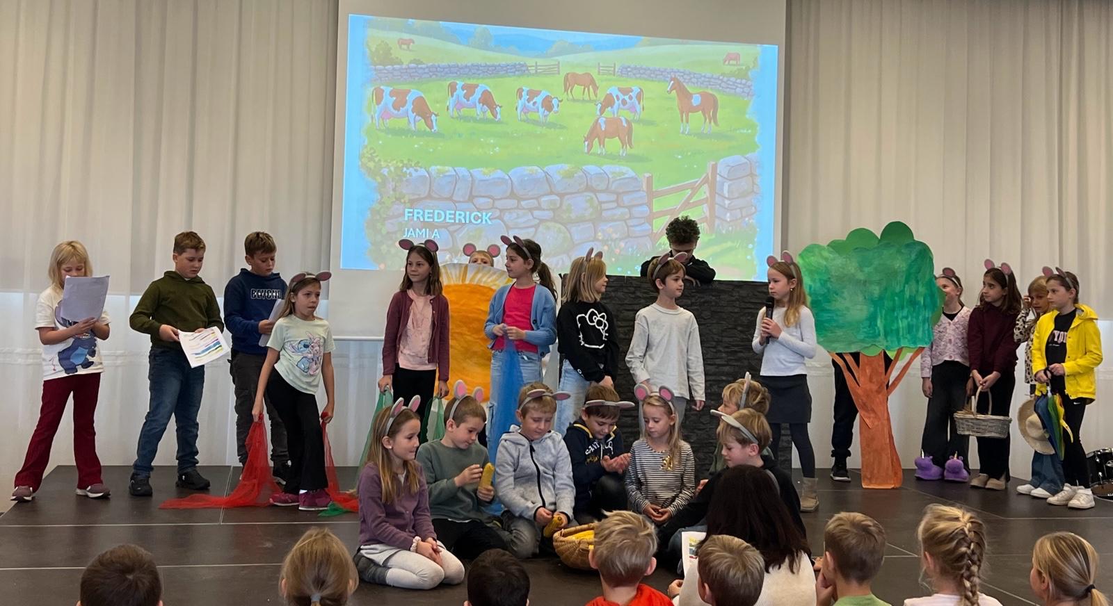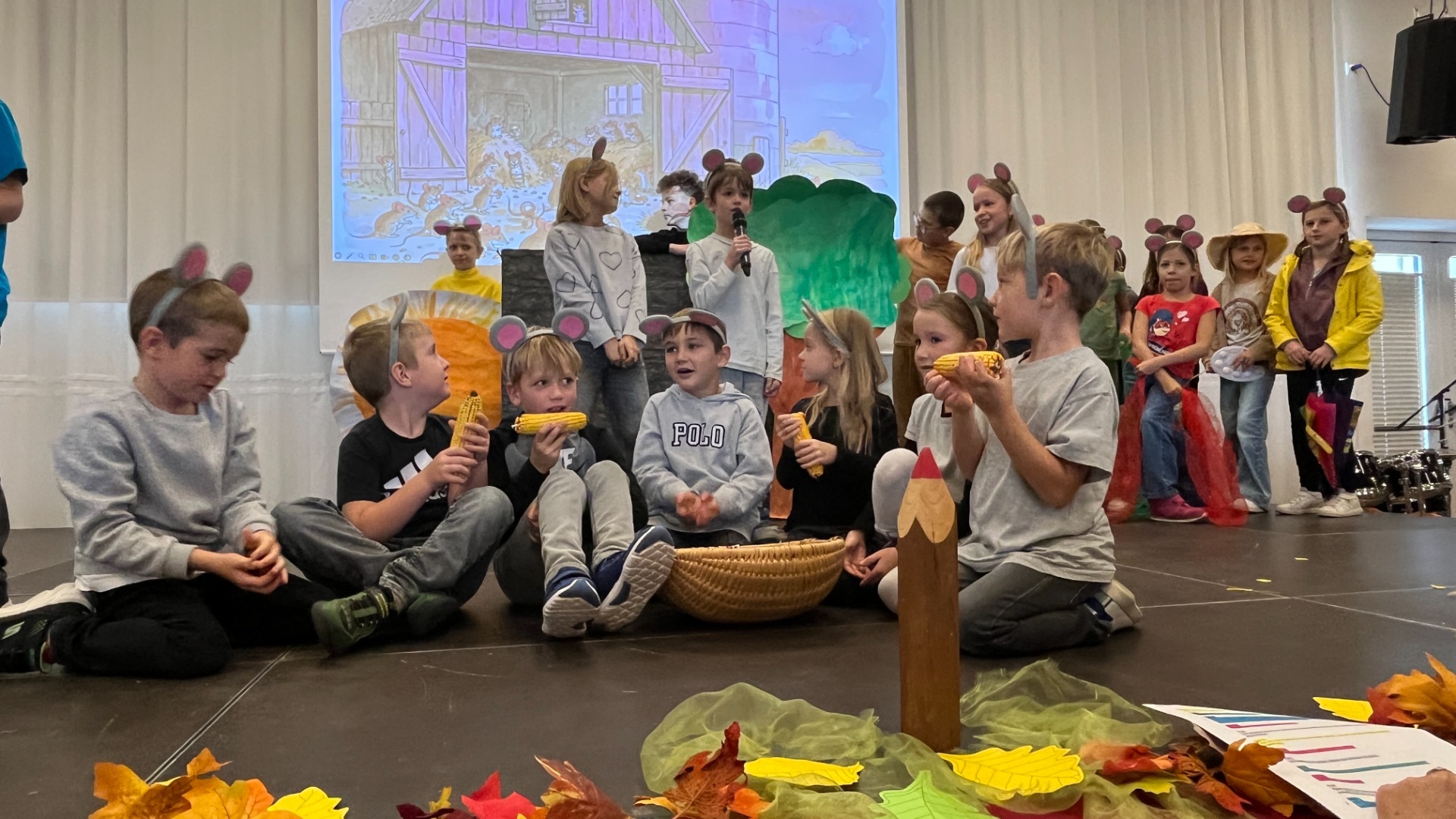 Der Bogen des Programms spannte sich von Herbstgedichten, Herbstliedern, Raps über zwei Theaterstücke ("Der Grüffelo", "Frederick") bis hin zu einem Euratsfeld - Schwerpunkt (Euratsfelder Gedichte, Euratsfelder Lied) wie ein bunter Regenbogen.
