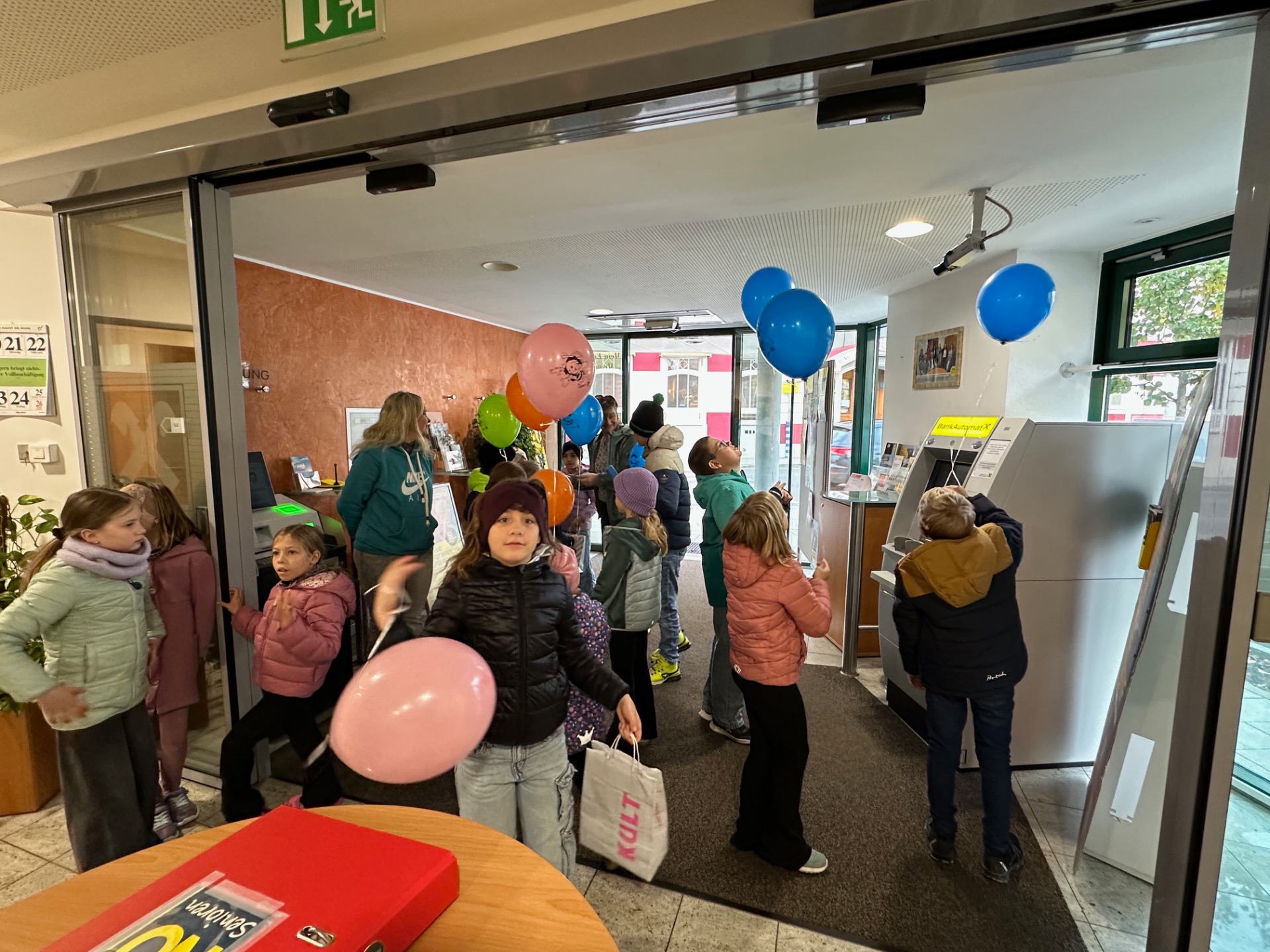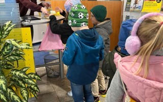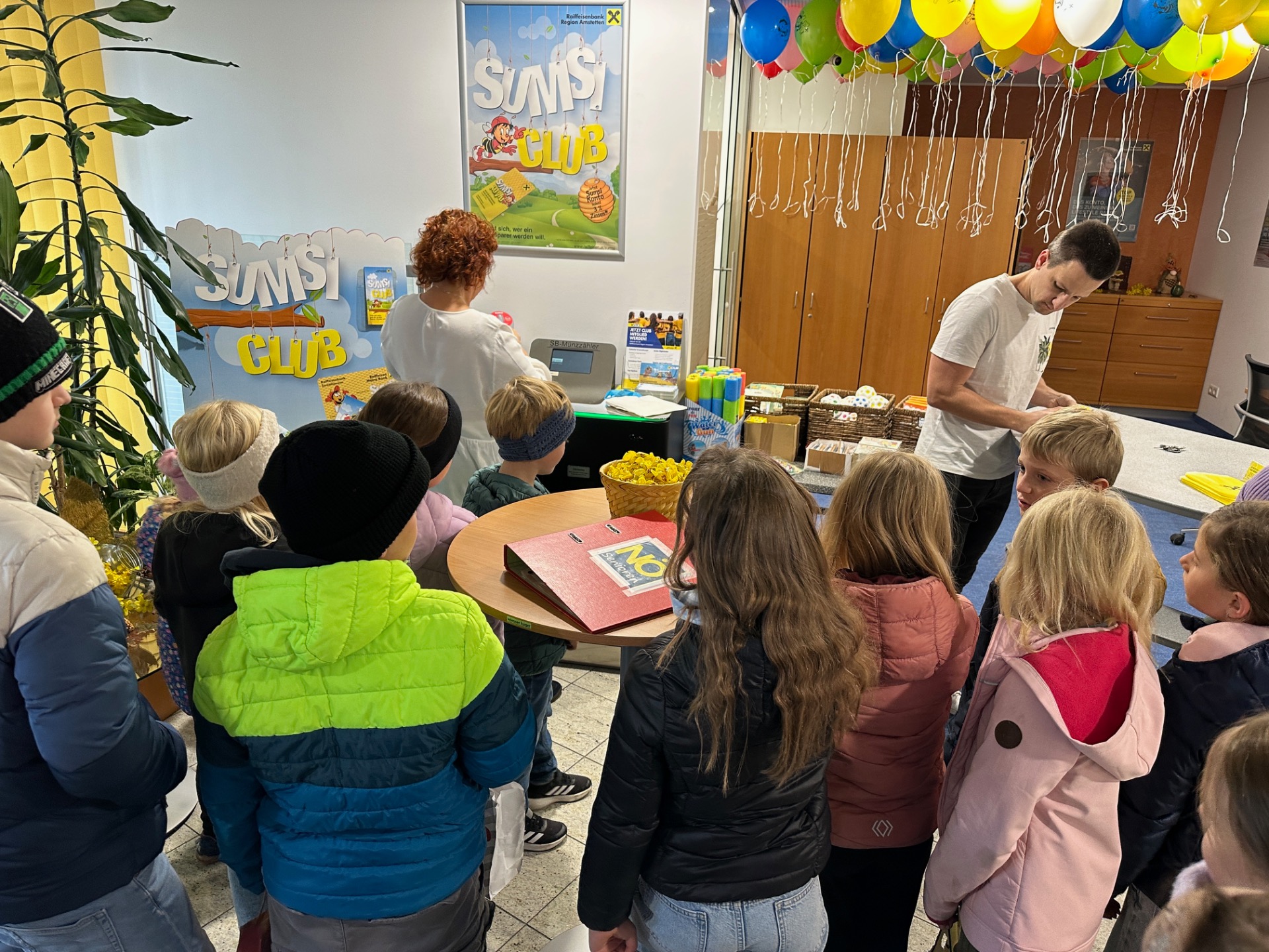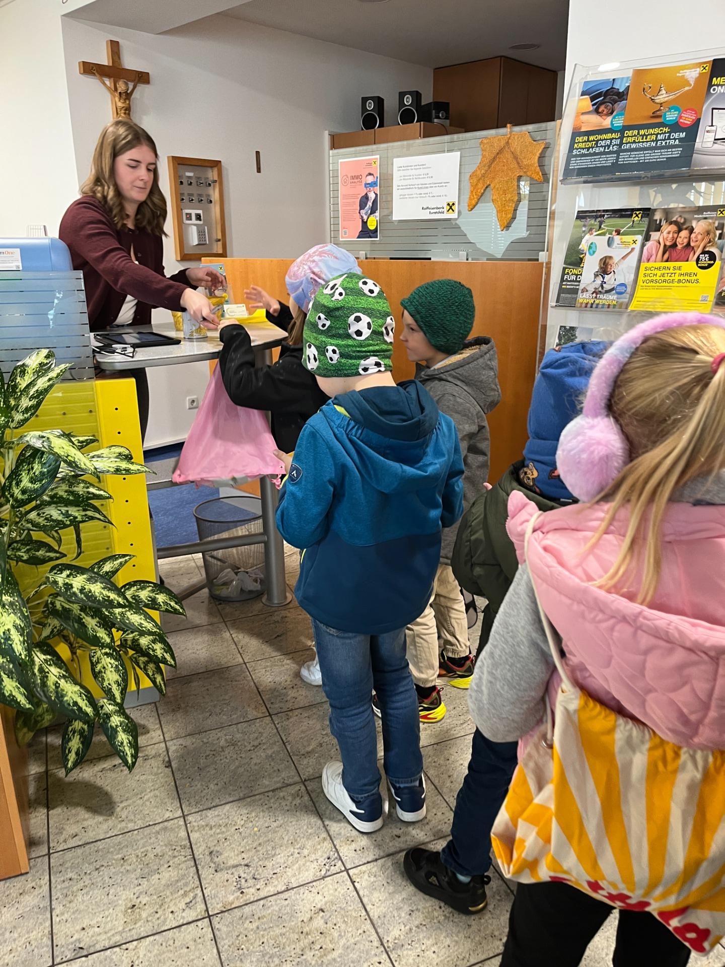 Die Kinder der Volksschule Euratsfeld konnten bei einem Lehrausgang auf die Raiffeisenbank einen Blick auf die Arbeit der Bankangestellten werfen und die Geldzählmaschine kennenlernen. Diese durften sie für ihre mitgebrachten Spardosen auch gleich selbst testen. Für die Sparer gab es kleine Spargeschenke und für jedes Kind einen Luftballon und ein Zuckerl. Danke für den freundlichen Empfang unserer Volksschulkinder.