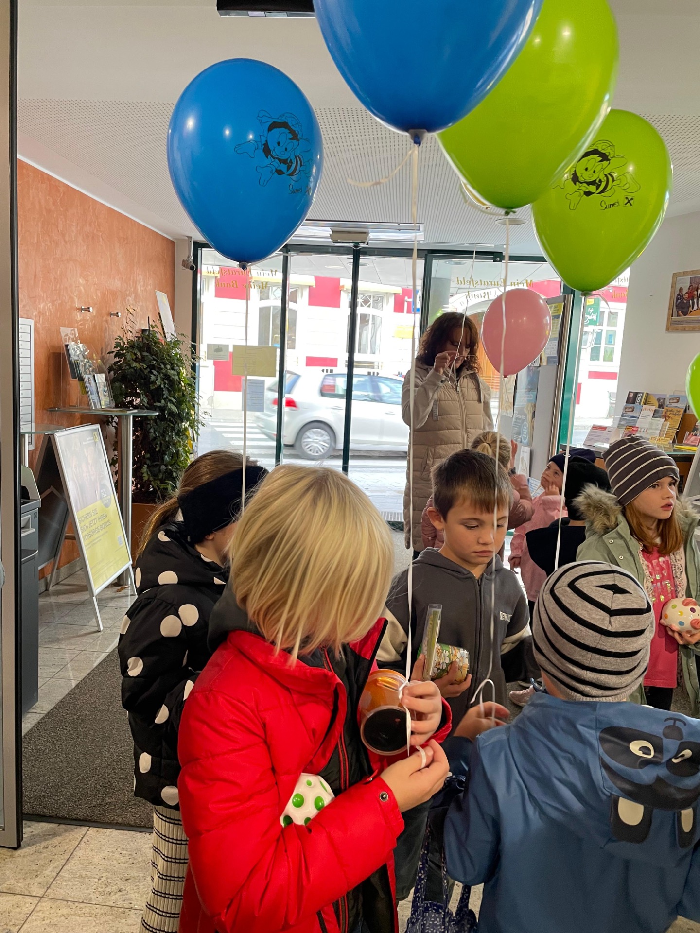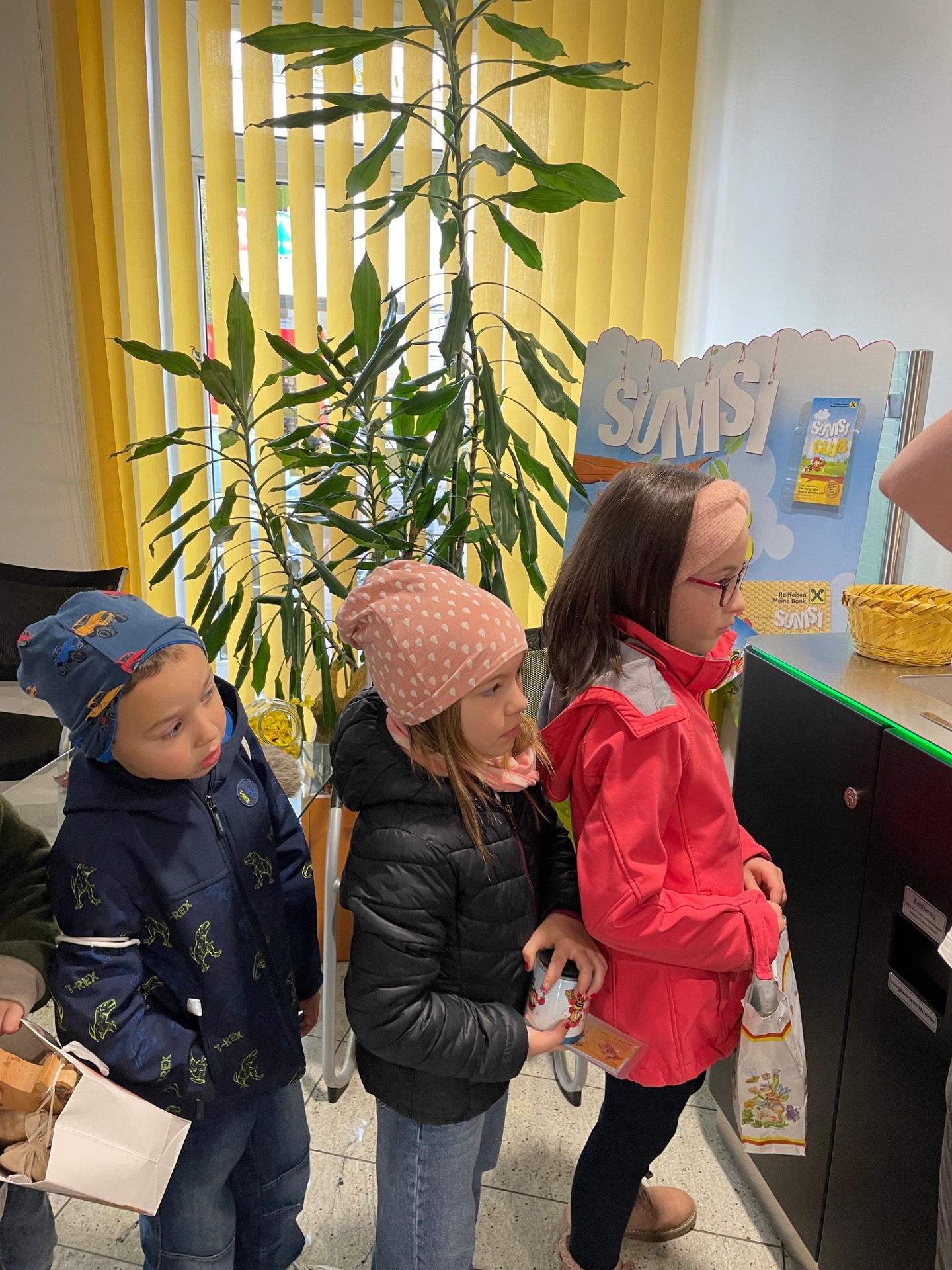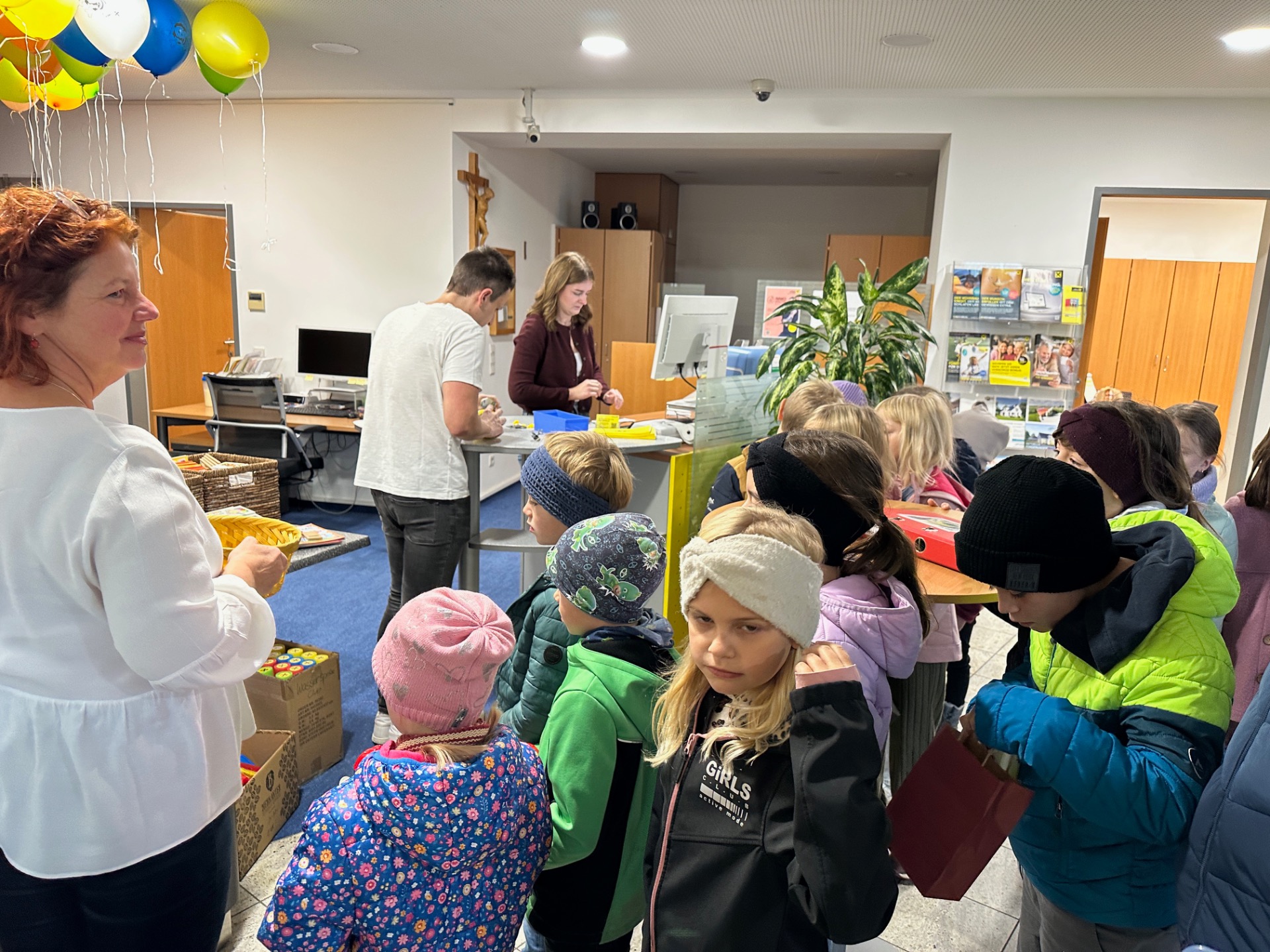 Die Kinder der Volksschule Euratsfeld konnten bei einem Lehrausgang auf die Raiffeisenbank einen Blick auf die Arbeit der Bankangestellten werfen und die Geldzählmaschine kennenlernen. Diese durften sie für ihre mitgebrachten Spardosen auch gleich selbst testen. Für die Sparer gab es kleine Spargeschenke und für jedes Kind einen Luftballon und ein Zuckerl. Danke für den freundlichen Empfang unserer Volksschulkinder.