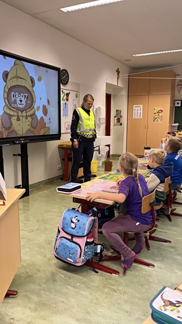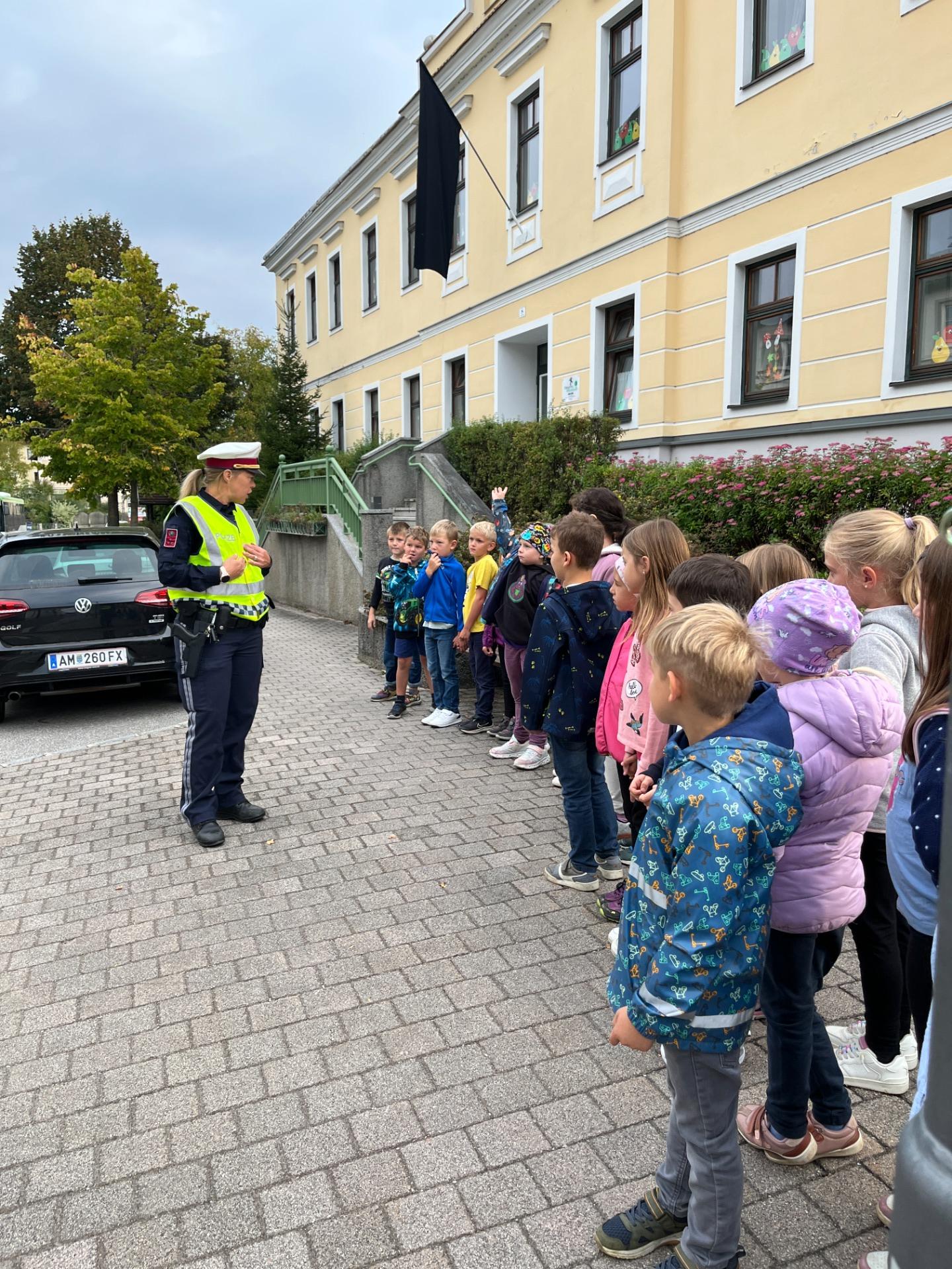 Die Verkehrssicherheit unserer Schulkinder ist uns allen ein wichtiges Anliegen. Mit Frau Rev. Insp. Regina Kaltenbrunner erlebten die Kinder der 1. Schulstufe eine besondere Unterrichtseinheit. Zuerst erfolgte in der Klasse eine Besprechung über die wichtigsten Verhaltensregeln und eine Erklärung der Verkehrssituation vor unserem Schulhaus. Danach wurde das Überqueren des Zebrastreifens gleich vor Ort geübt. Herzlichen Dank für die lehrreichen Unterweisungen!